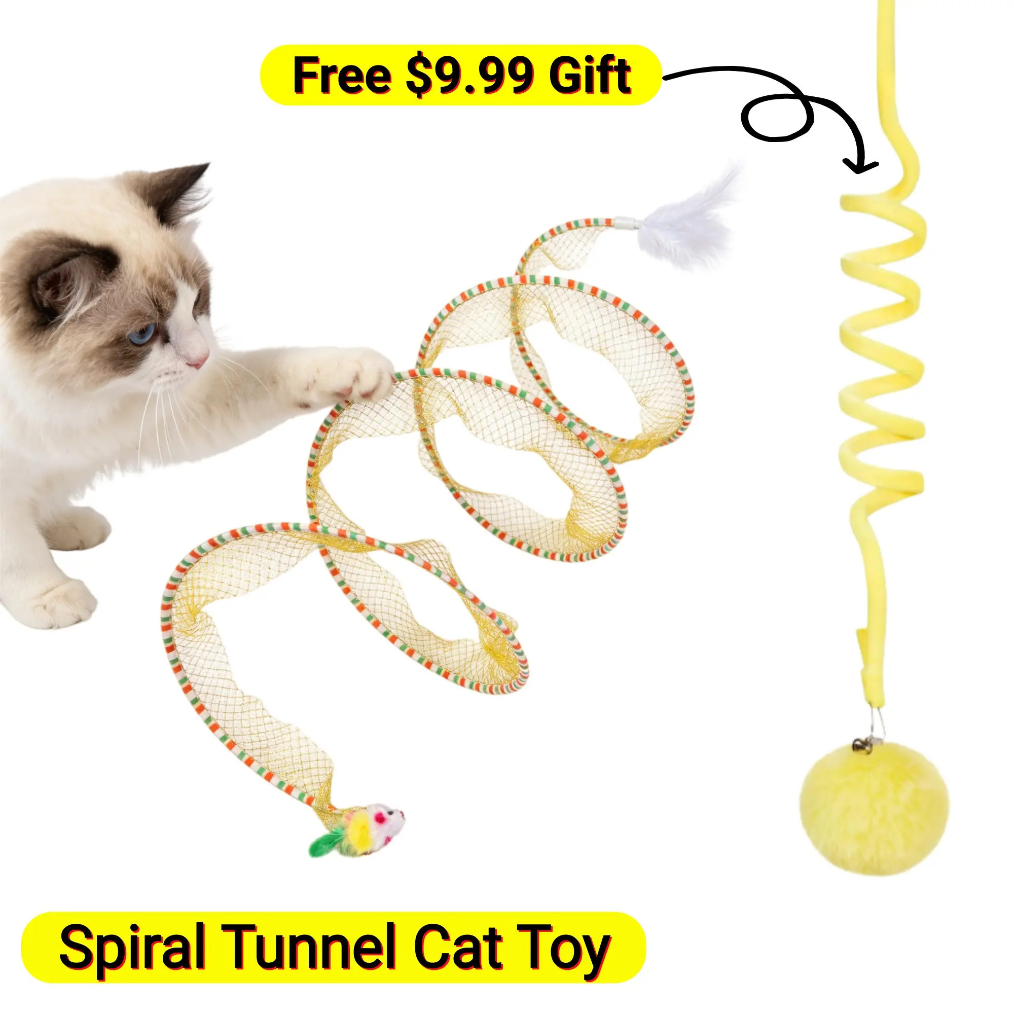 YES, YOU HEARD THAT RIGHT! Buy our spiral tunnel, get a PREMIUM spring cat toy ABSOLUTELY FREE (worth $9.99)! The hanging spring bounces, swings, and catches their eye—so your cat gets two toys for the price of one. Perfect for multi-cat households, or just spoiling your single fur baby (no judgment ).