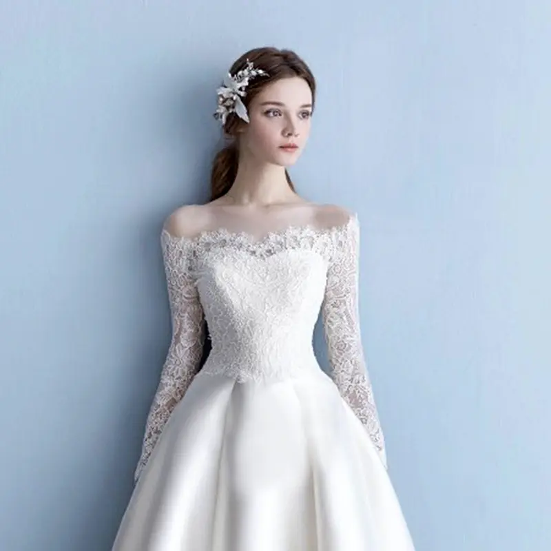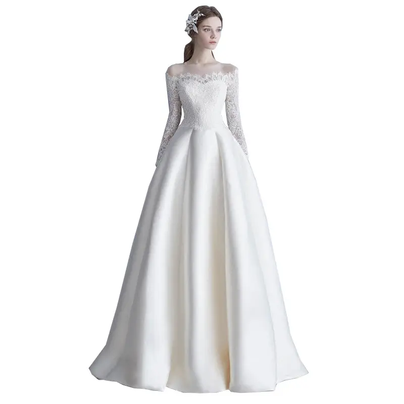 2026 New Summer Style Off-the-Shoulder Floor-Length Wedding Dress, Light Main Wedding Gown with Lace and Satin for Marriage