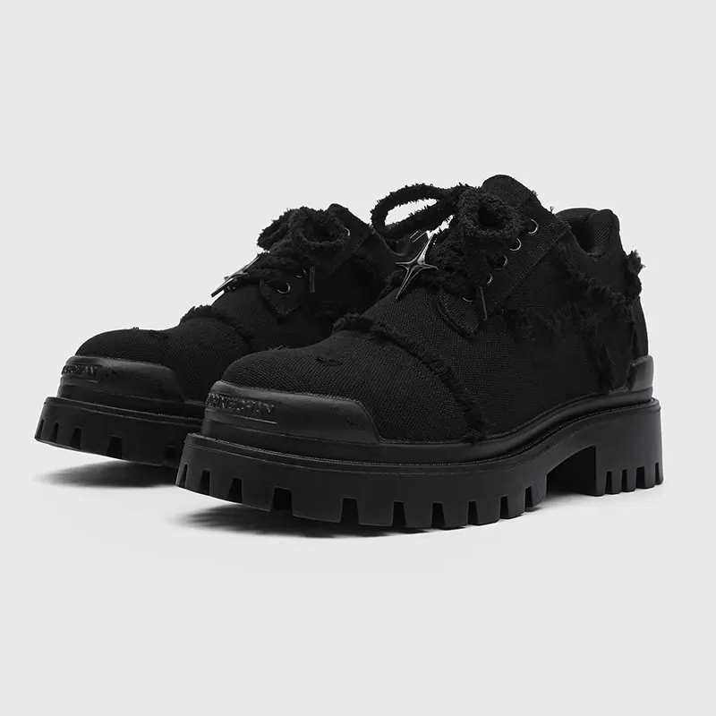 Derby men’s leather shoes with a premium feel—black dress/casual style, height-boosting platform sole, large toe box