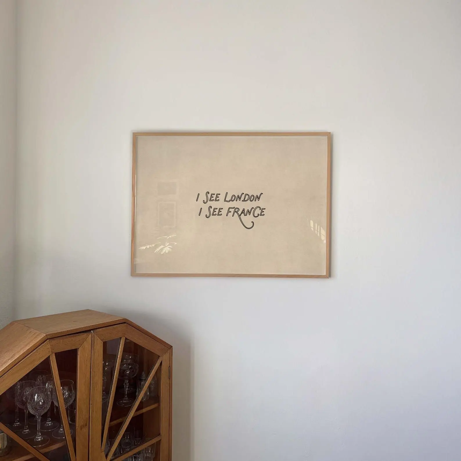 Trendy Bathroom Wall Art I see London I see France, Funny Typography Print
