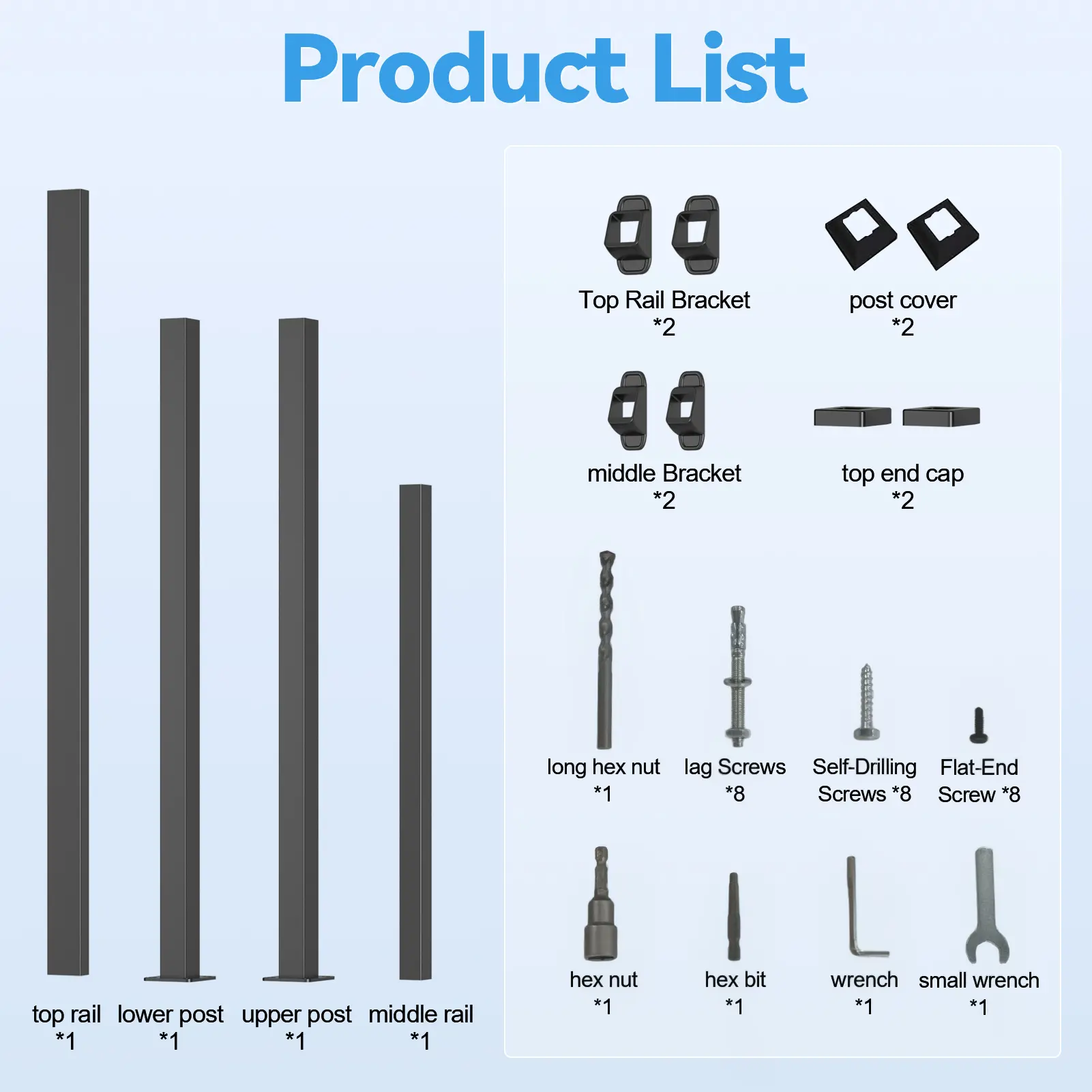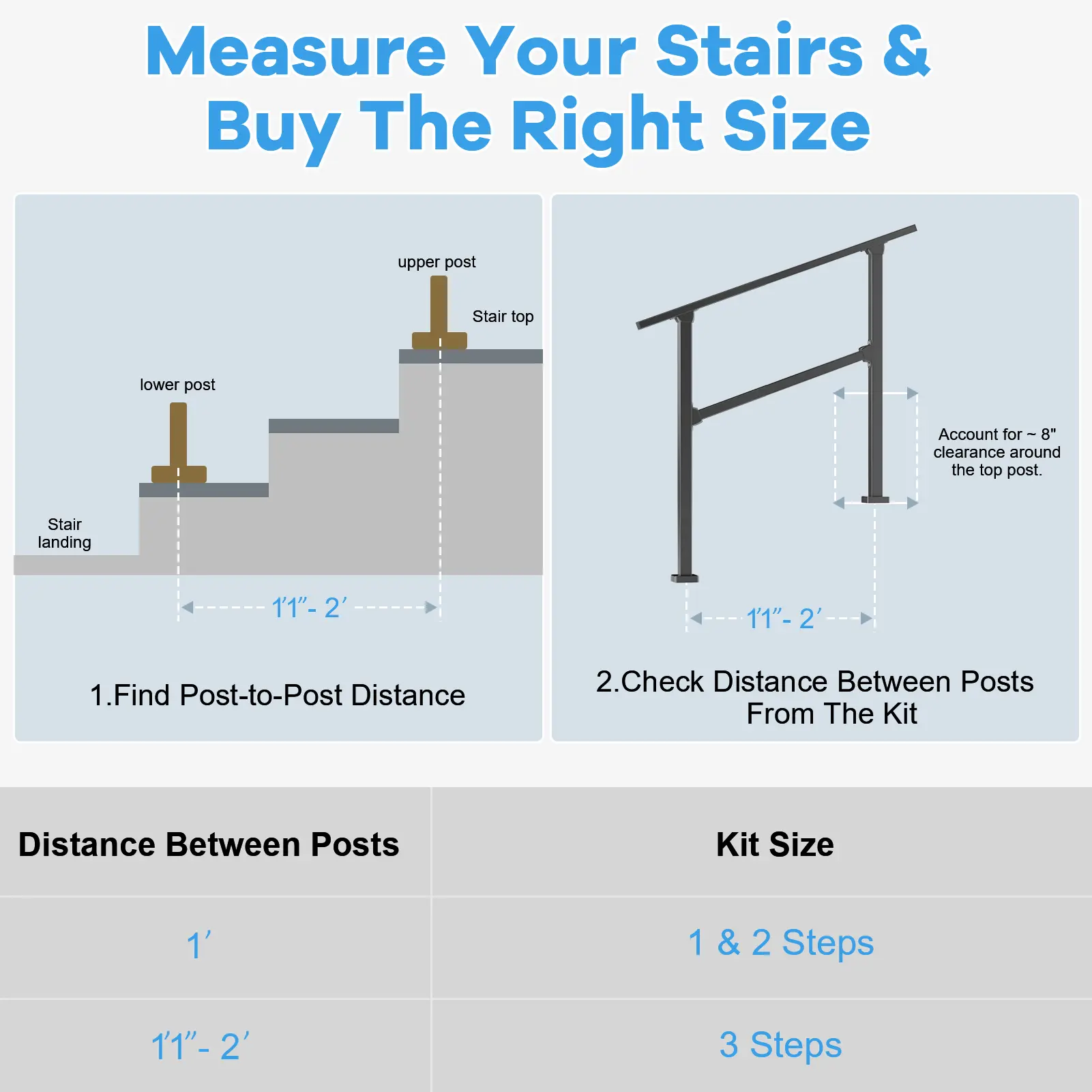 Easy Installation: Complete stair railing kit includes all necessary tools, parts, and hardware for quick assembly, along with a comprehensive installation guide to ensure a hassle-free setup process in minutes.