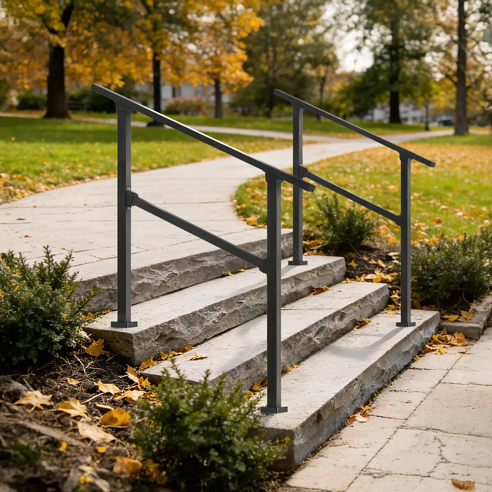 3 Step Hand Rails for Outdoor Steps, Adjustable 40" x 36" Stair Railing Kit Fits 1 to 3 Steps, Black Stair Handrail for Concrete Steps, Porch Steps