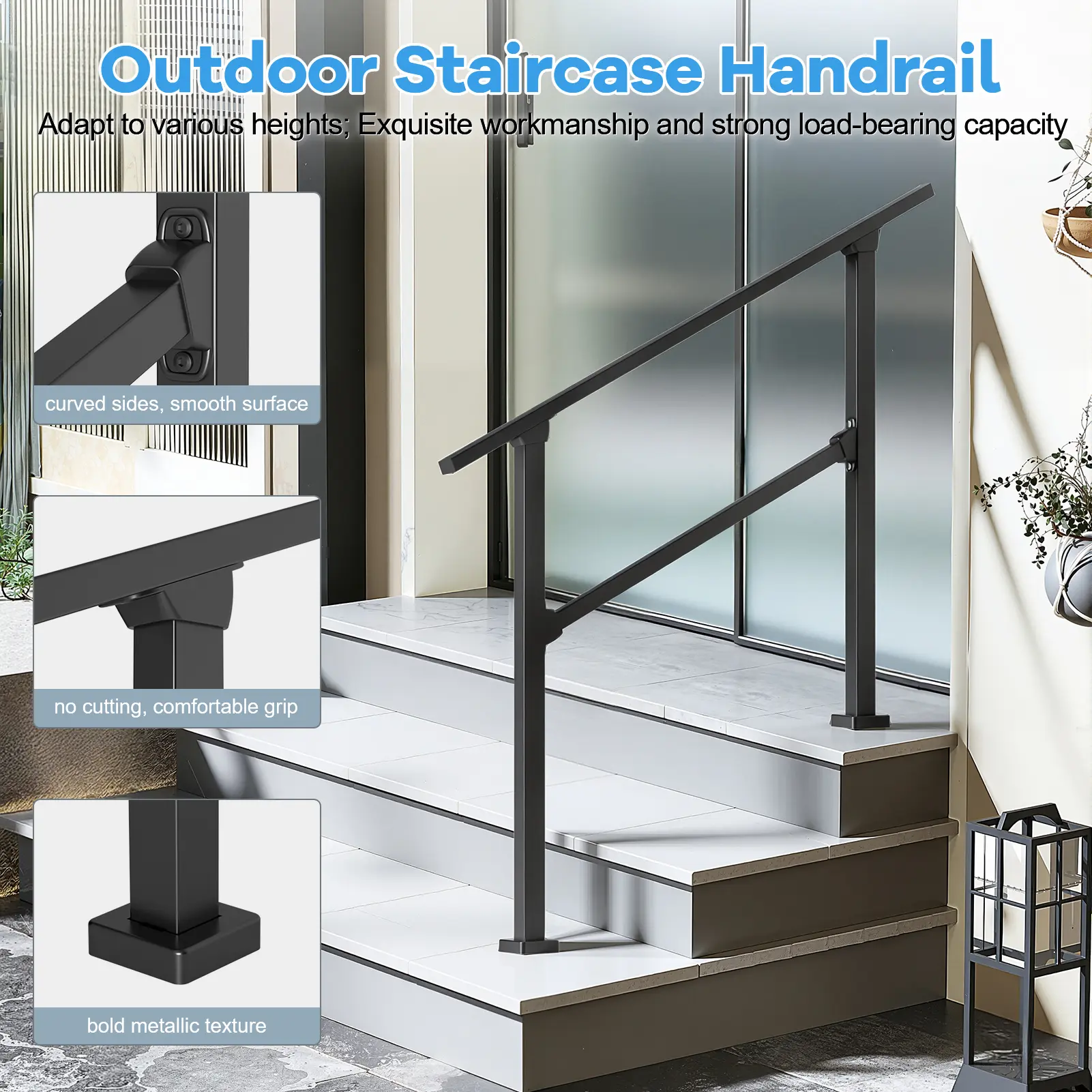 Adjustable & Flexible: This handrail features adjustable and flexible design, easily adapting to different step heights and meeting various height requirements. The product is finely crafted with strong load-bearing capacity, ensuring reliability for long-term use.