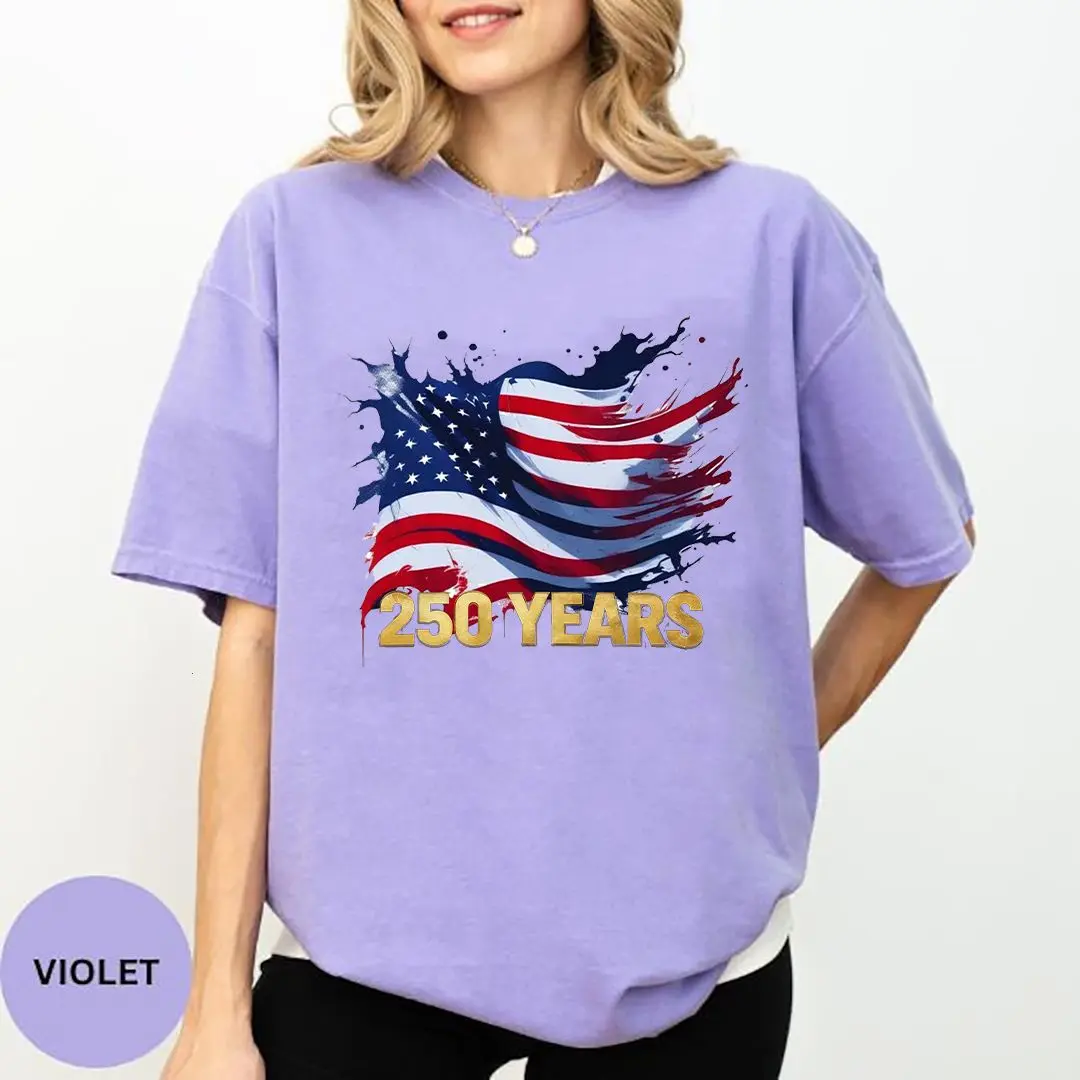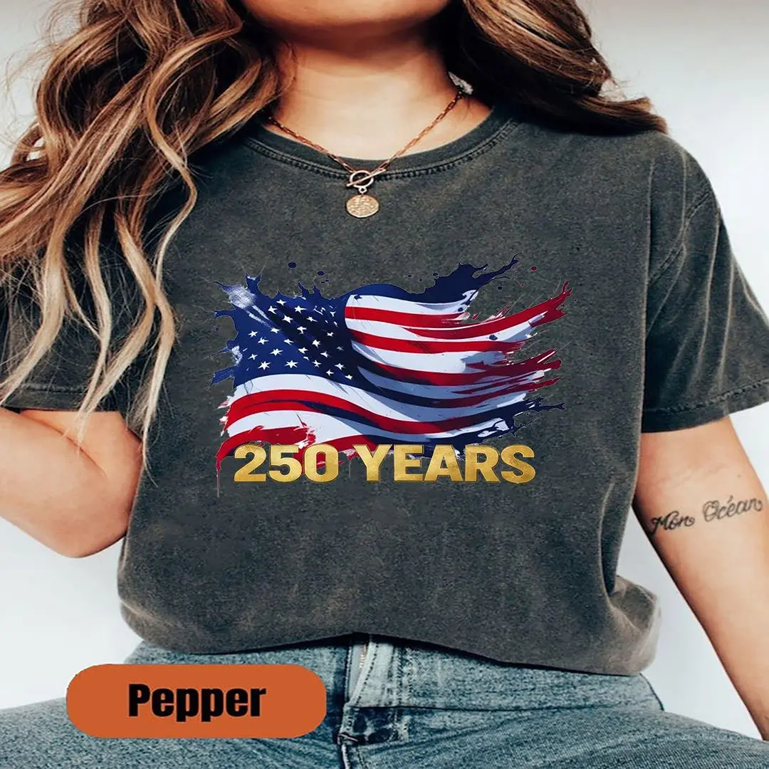 250 Years American Flag Shirt, Patriotic USA Independence Day Tee, Vintage 4th of July Freedom Graphic T-shirt Comfort Colors.