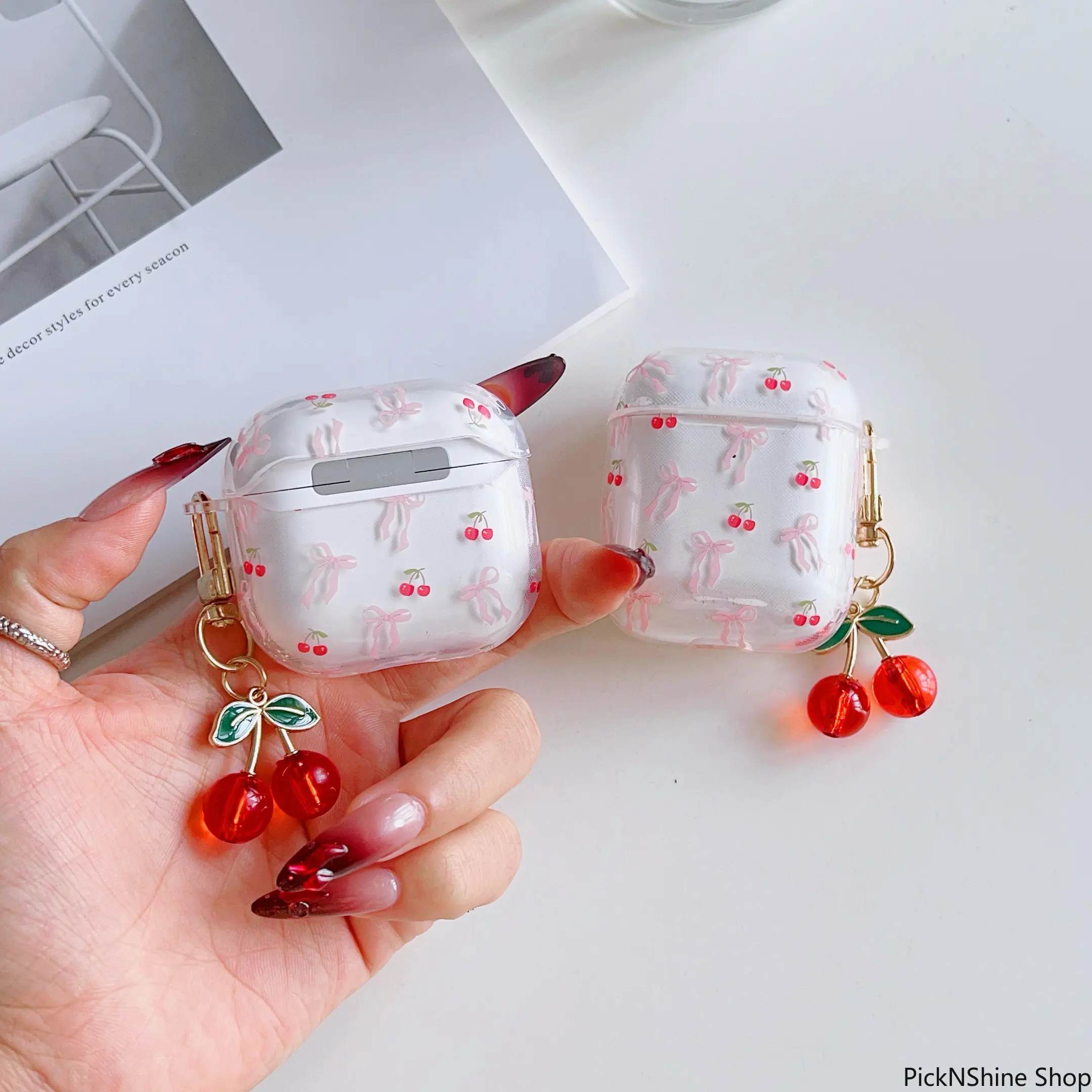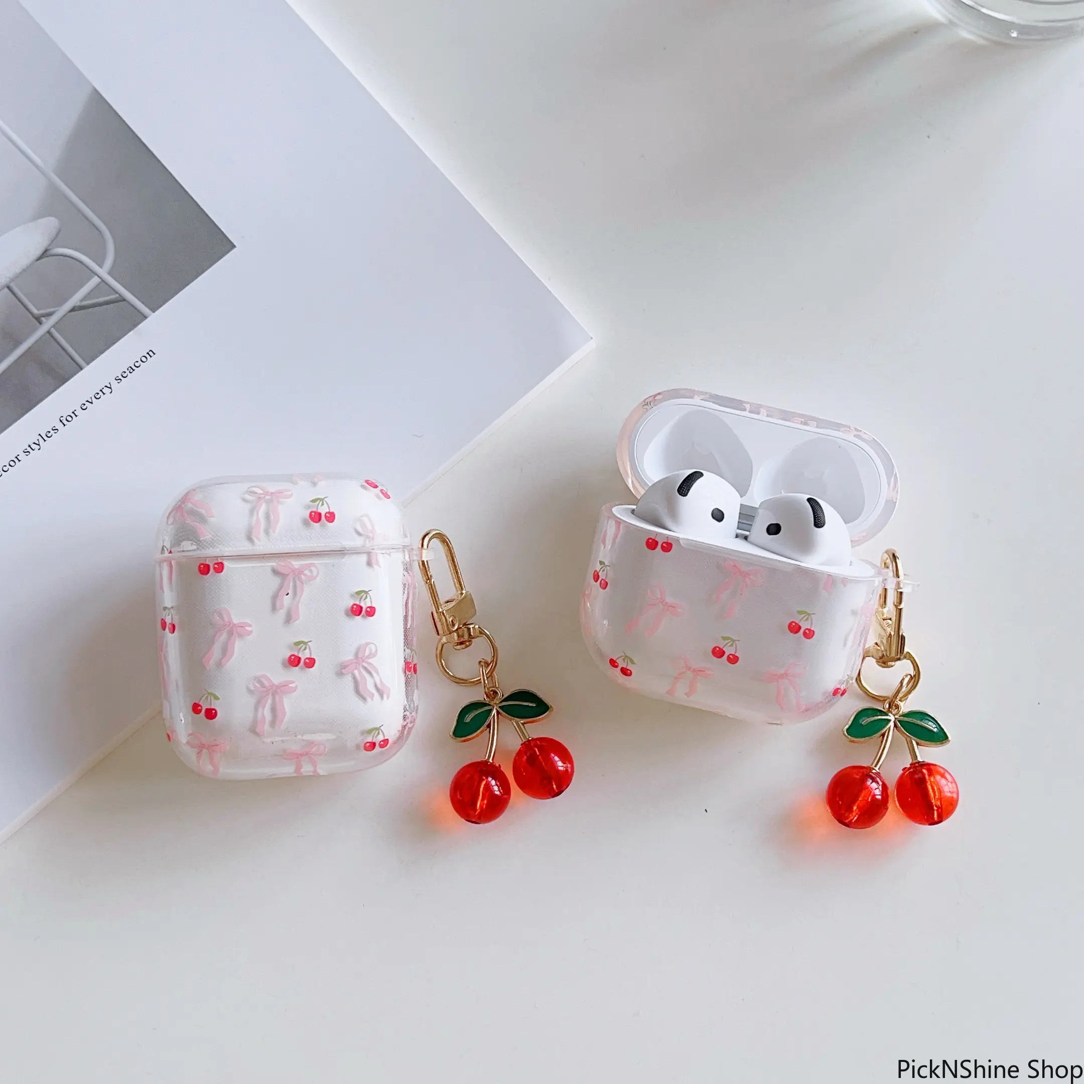 Cherry Pattern Earphone Case, Protective Cover Compatible With AirPods Series Models, Stylish Durable Shell For Wireless Bluetooth Charging Box And Daily Carrying