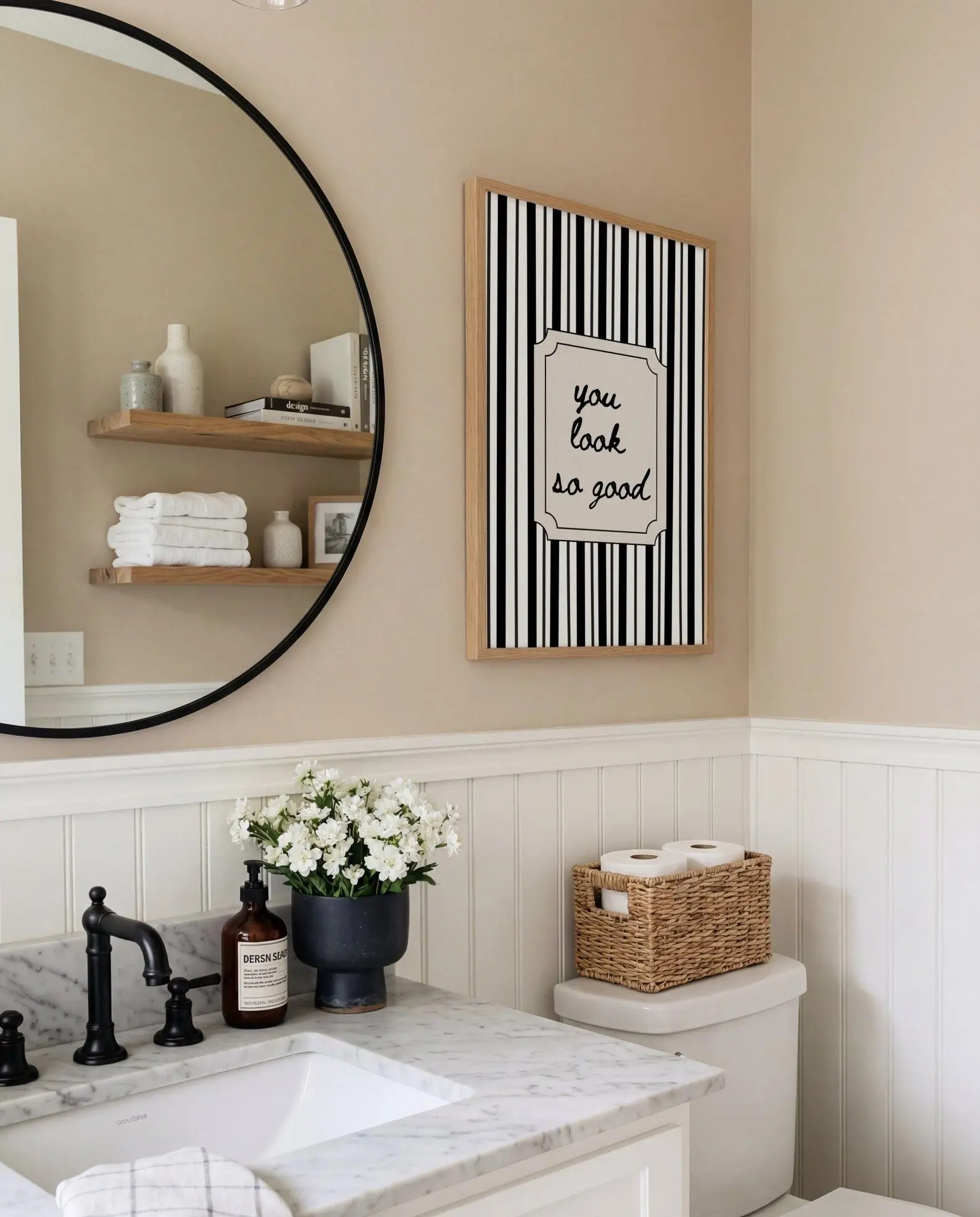 You Look So Good Print, Black Striped Bathroom Decor, Modern Minimalist