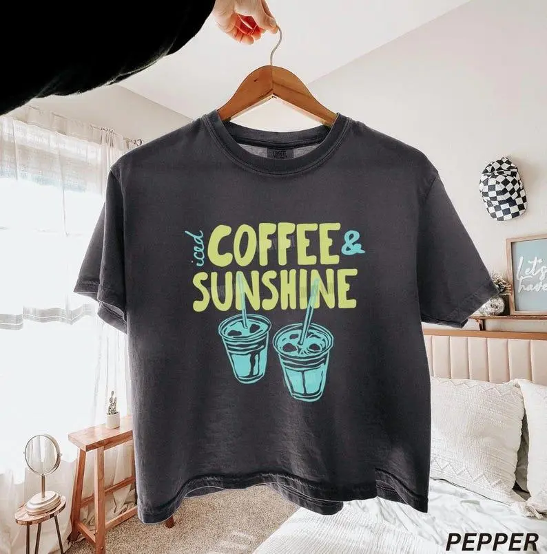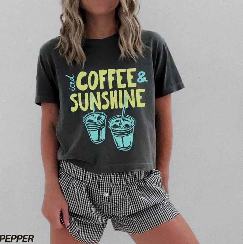 Coffee Sunshine Summer Graphic Crop Tee Trendy Beachy Aesthetic Boxy Shirt