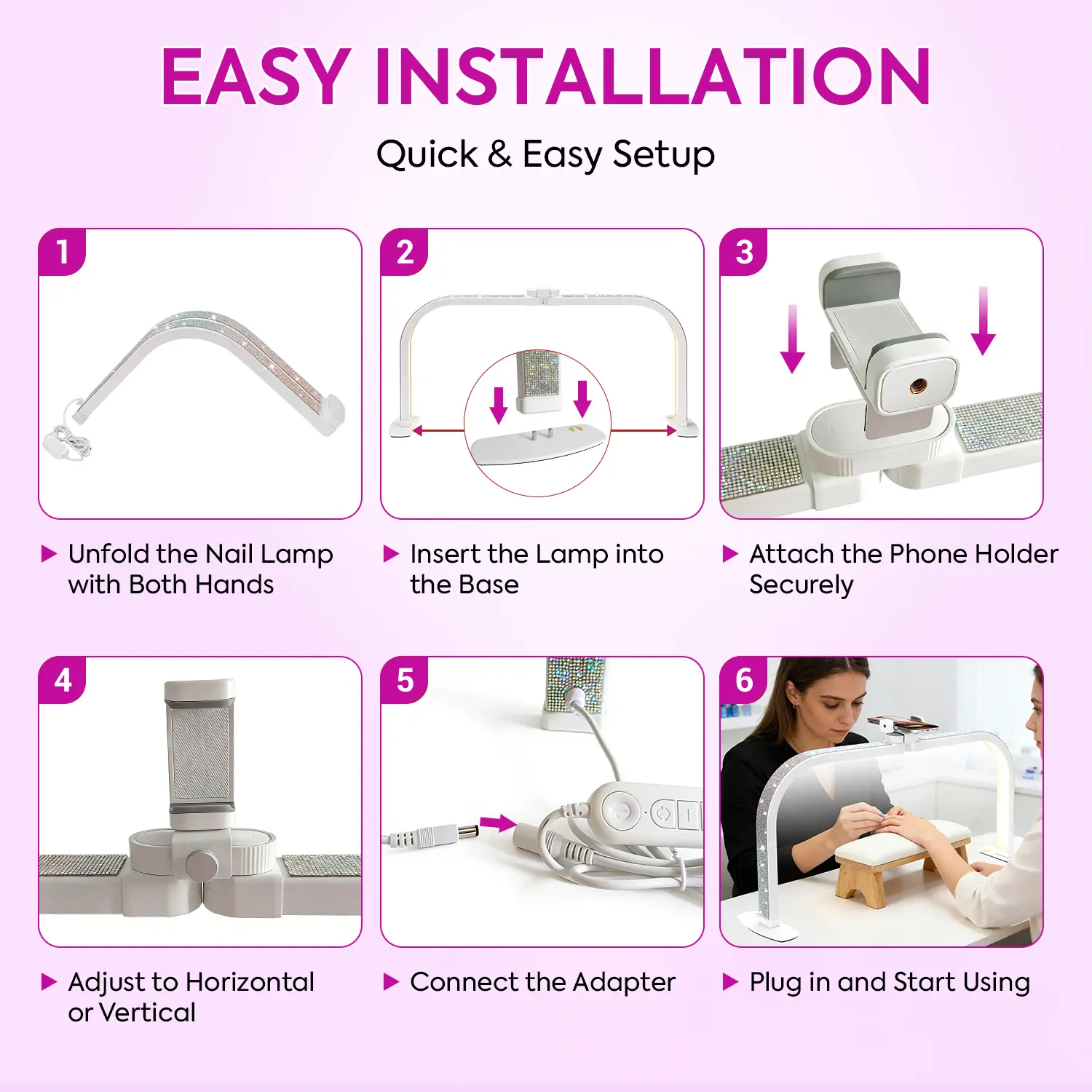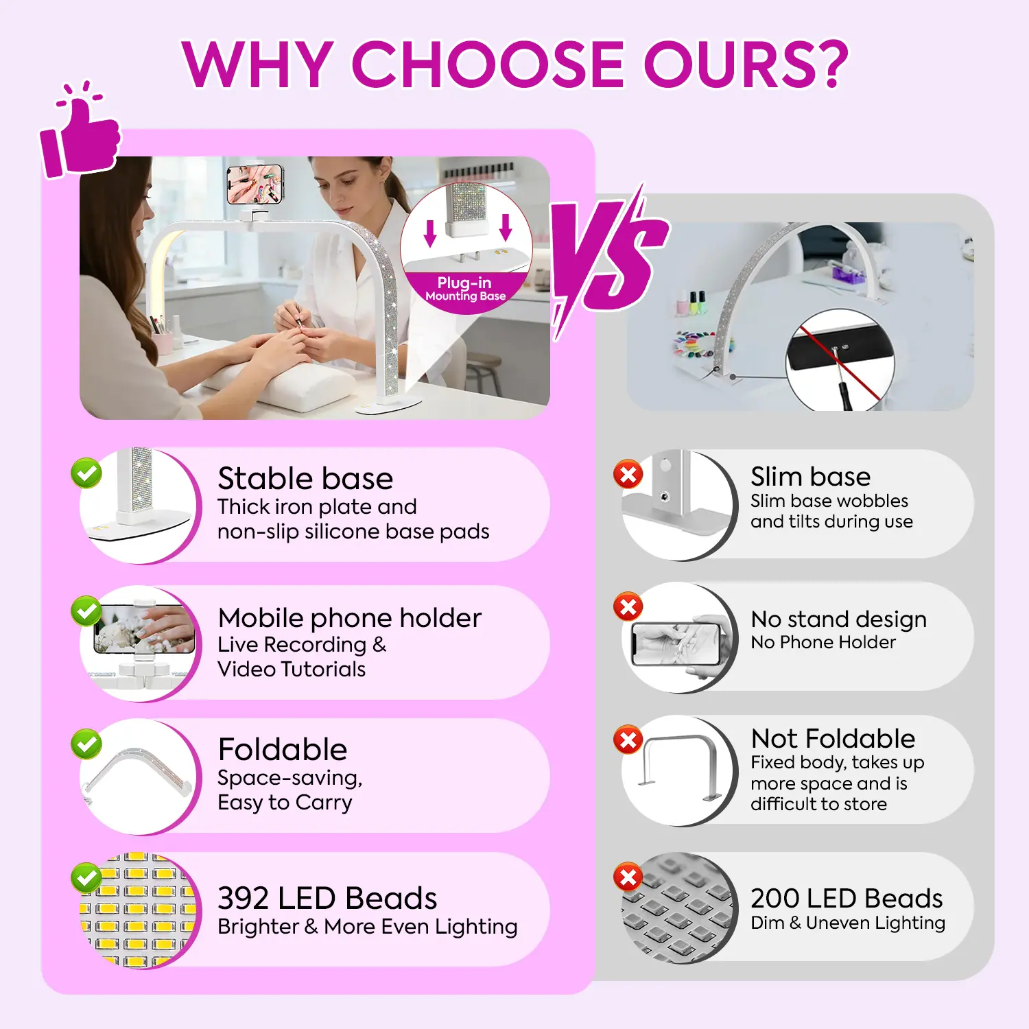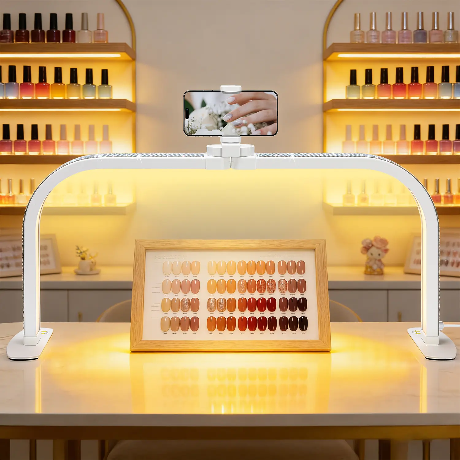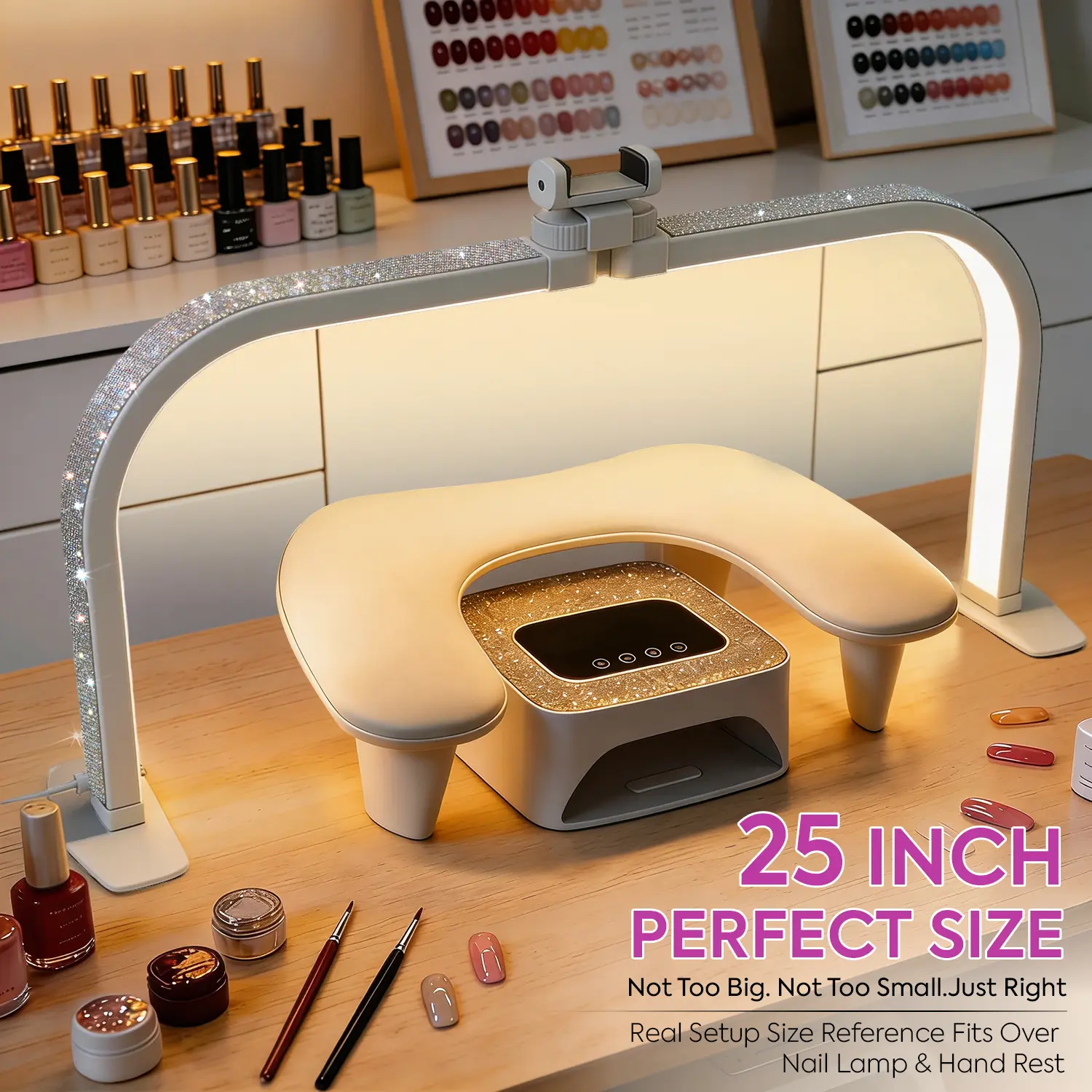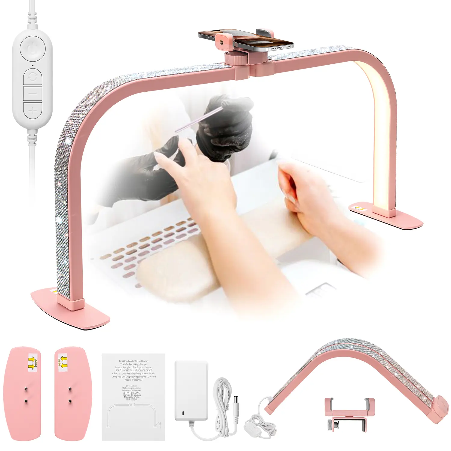 Professional Half Moon Nail Lamp, Foldable 25.6" U-Shaped LED Nail Desk Light With Phone Holder, Dimmable, Adjustable Color Temperature 3000K–6500K