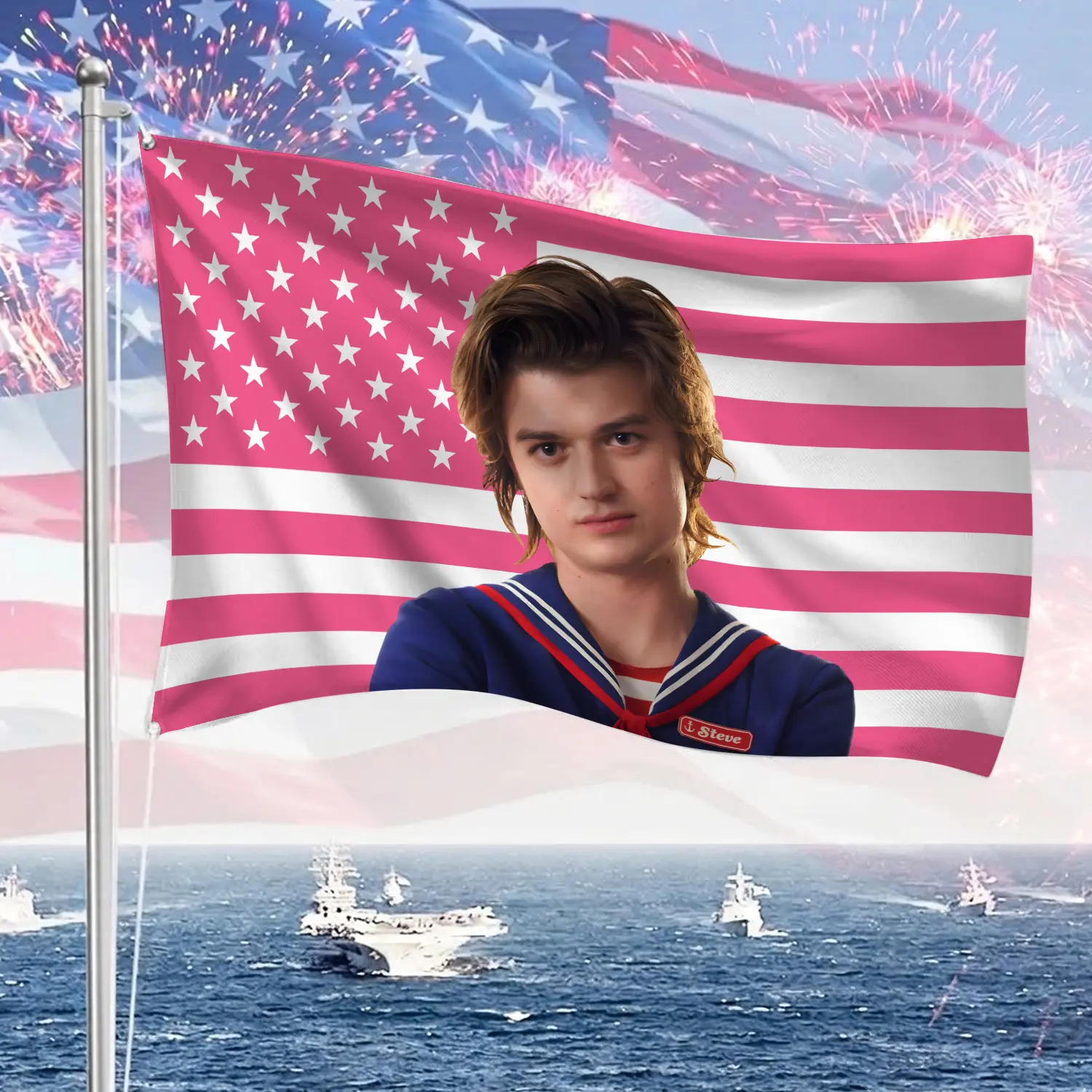 Steve Harrington Pink Tapestry, Stranger Things Wall Hanging Decor, Retro TV Show Art Banner, Bedroom Fandom Wall Art, Gift for Fans