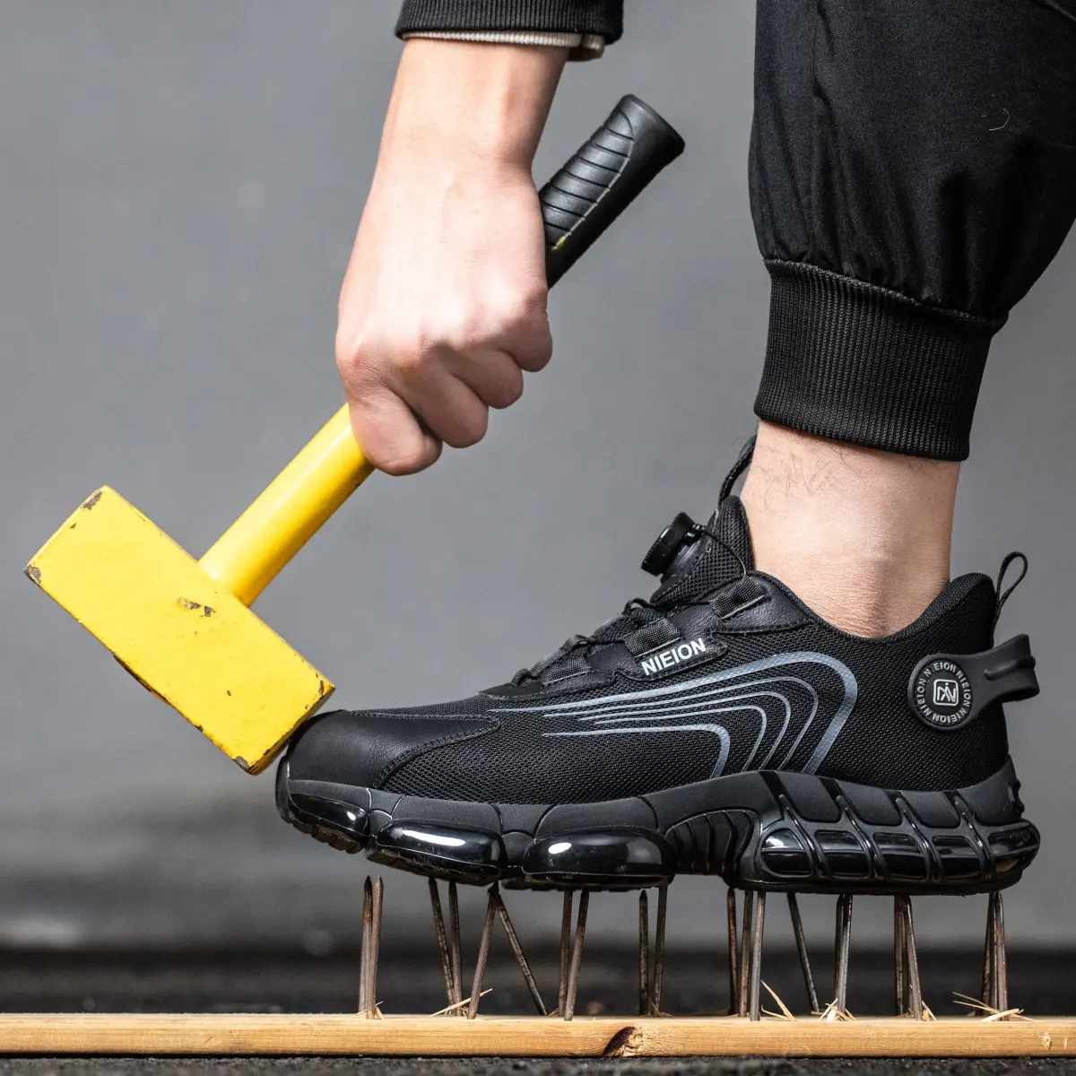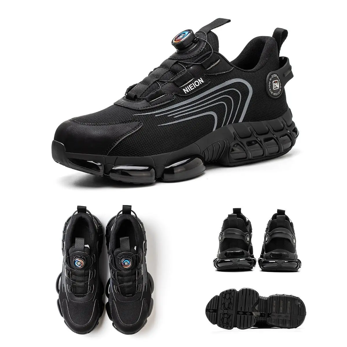 Safety Shoes Work Shoes Steel Toe Caps Anti Smash And Anti Puncture Breathable Mesh Surface Air Cushioned Sole for Comfortable Wear Resistance Rotating Button Design Men's Safety Shoes Women's Safety Shoes Construction Site Work Shoes