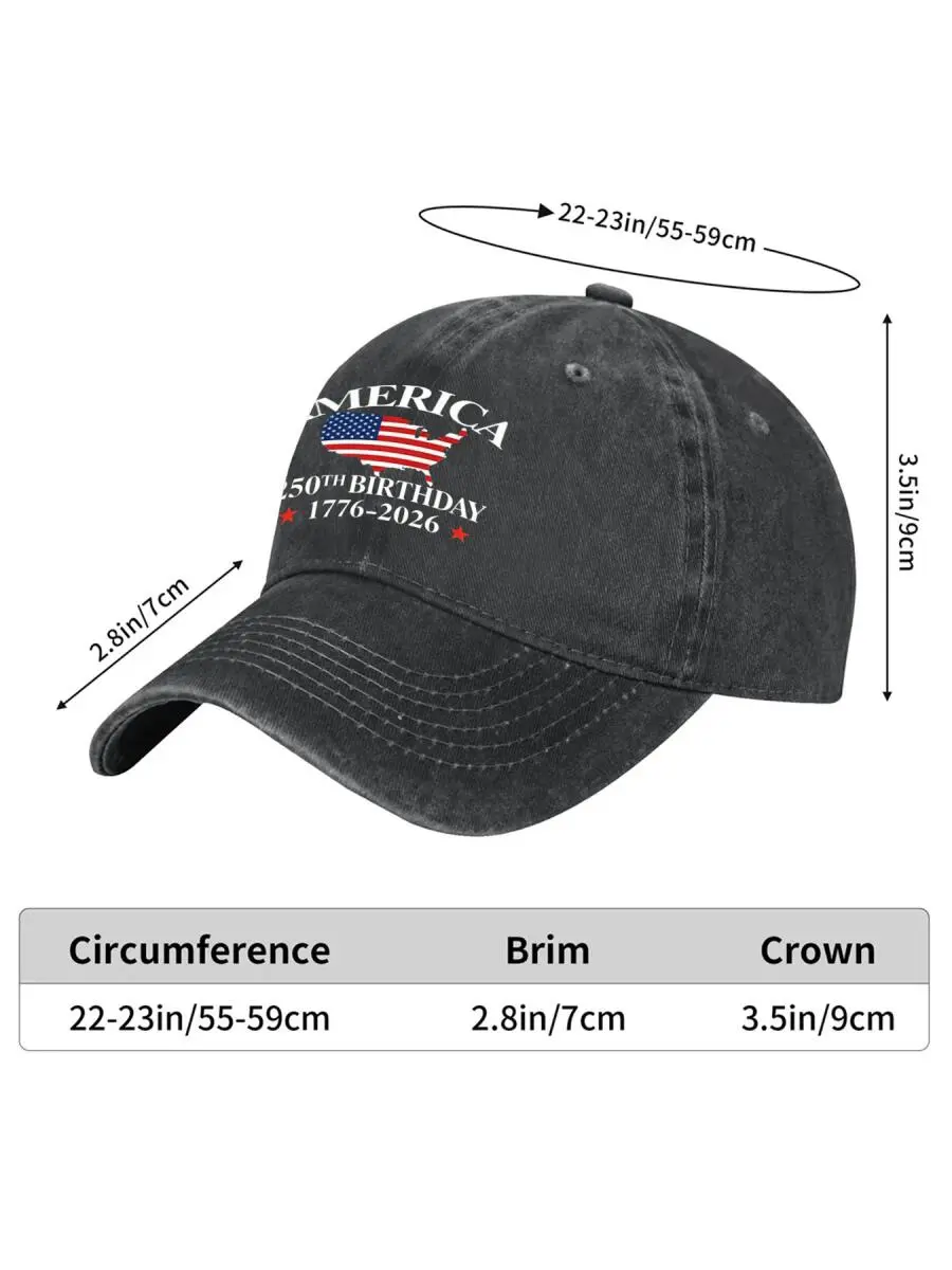 This 100% cotton adjustable baseball cap is a perfect tribute to the nation's milestone. The vintage washed design adds a timeless charm, making it a standout accessory. Ideal for commemorating the 250th anniversary, this hat blends history with fashion.