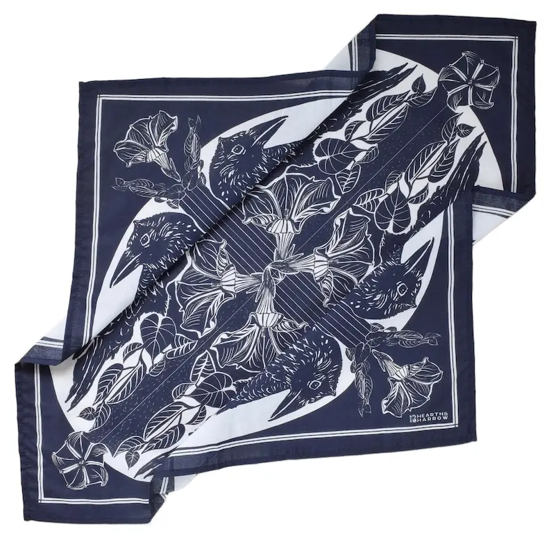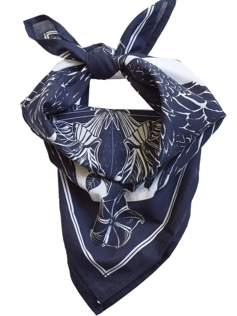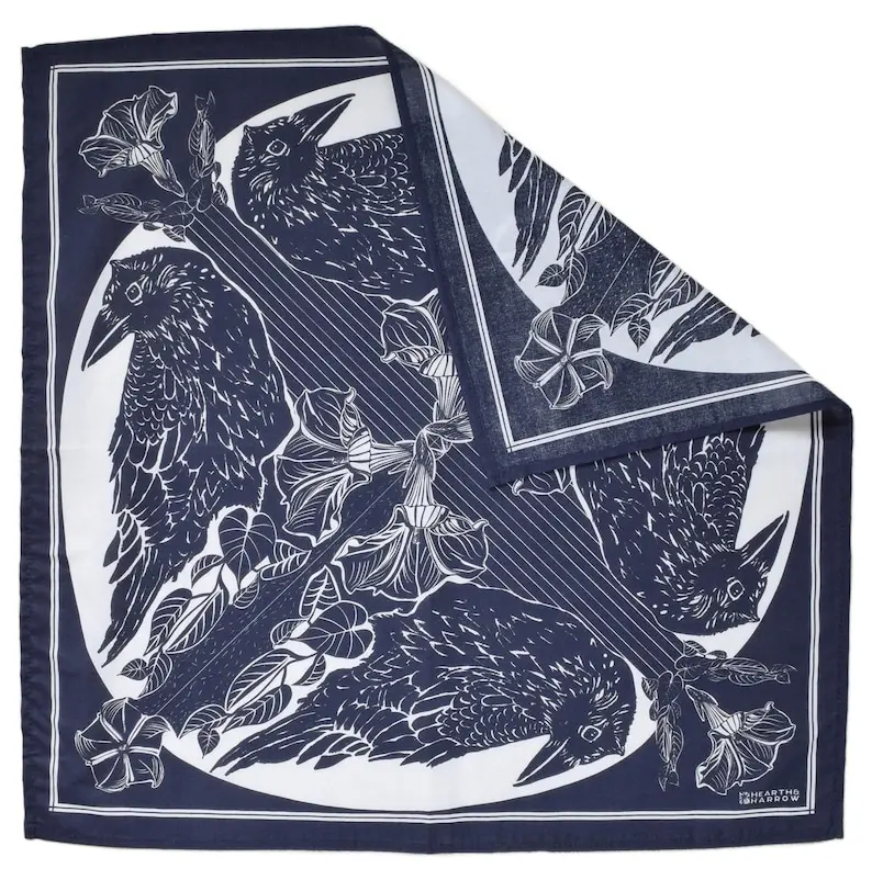 Our Crow Bandana in midnight blue adds a sophisticated touch of joy and functionality to any of your adventures. We've added moonflower and geometric designs to our popular crow design to bring you a wearable and functional accessory that gets softer and softer with every wash!