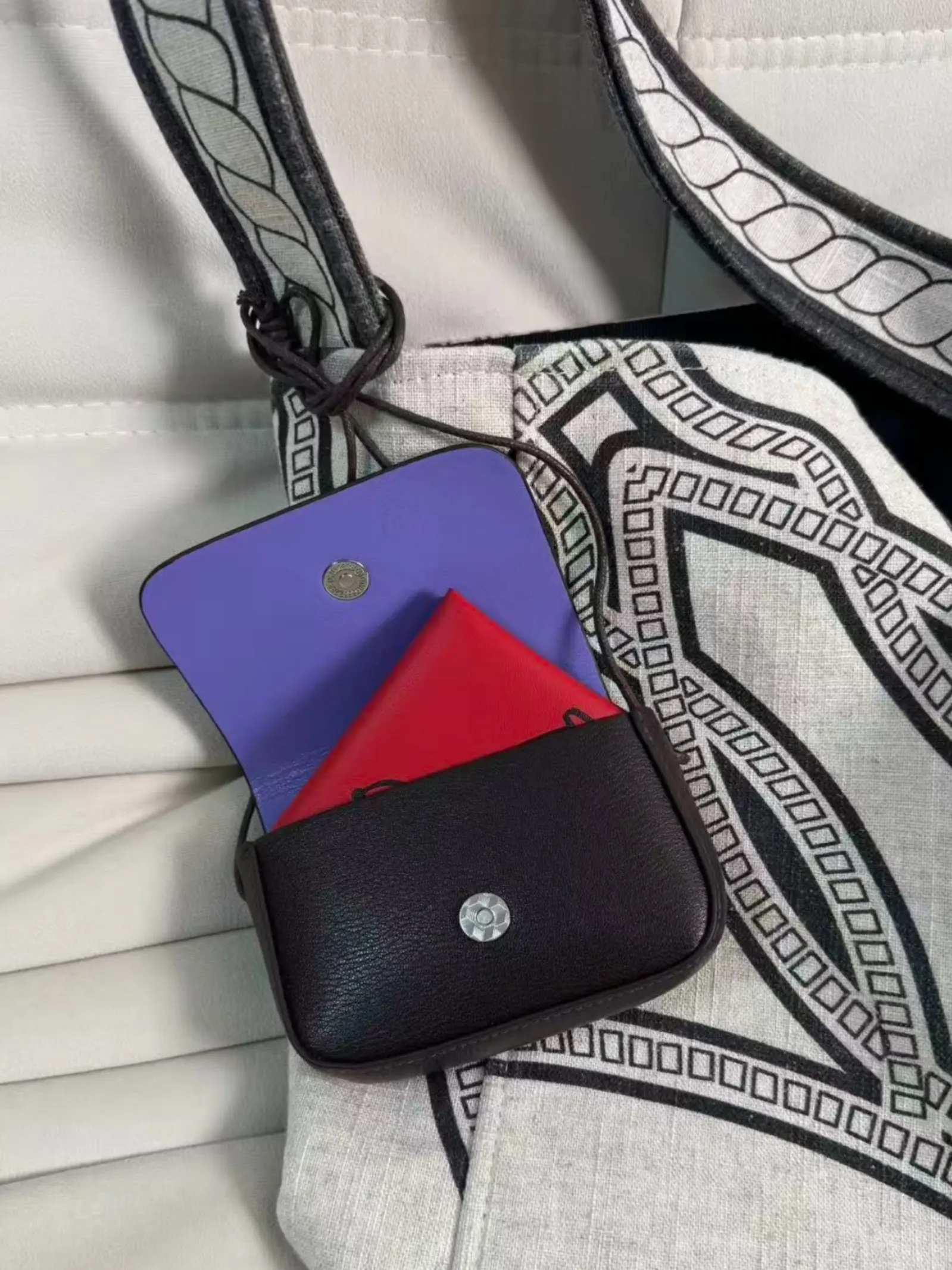 ·Dual-Function as a Bag Charm or Pouch: More than just a mini wallet, this versatile accessory can be attached to larger handbags as a stylish bag charm. Use it to store items you need quick access to, such as keys or earbuds, combining fashion with function in a sleek, compact form