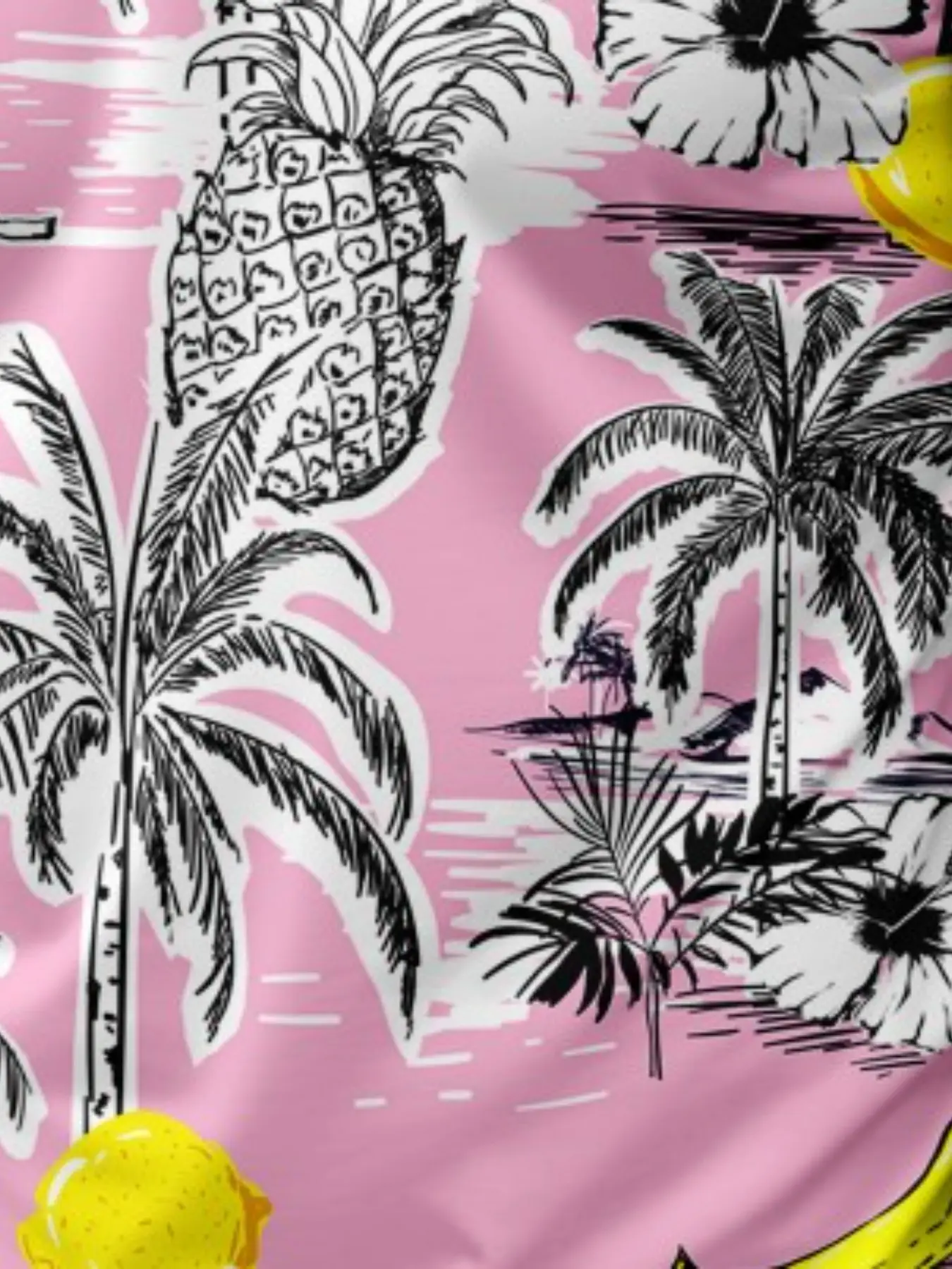 【Tropical Print】: Features vibrant pineapple, banana, and palm tree prints, perfect for a summer vibe.