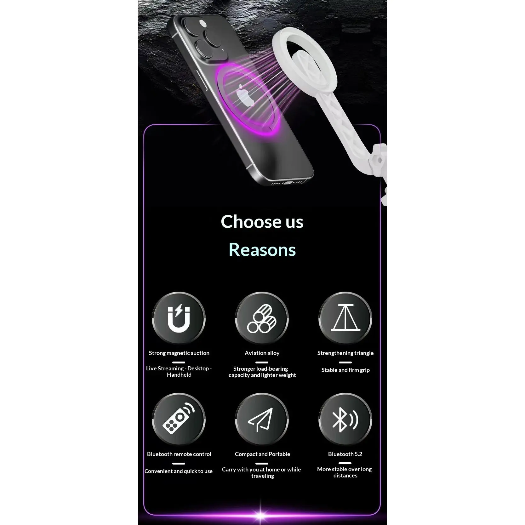 KraftGeek Magstand Magnetic Selfie Stick Tripod for iPhone and Android, 64" Phone Tripod Compatible with MagSafe, Fit for iPhone 17 and Pixel 10, MagSafe Case and Other Phones with Metal Ring