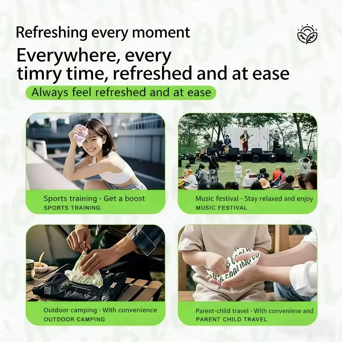 Efficiently absorbs sweat and neutralizes odors, cools down quickly, leaves a refreshing non-sticky feel, and requires no hand washing.Ideal for skin wiping; perfect cooling essential for outdoor activities such as running, working out, and camping!Suitable for outdoor activities, military training, and travel.Individually packaged for easy portability and use; can be used for cleaning when needed.