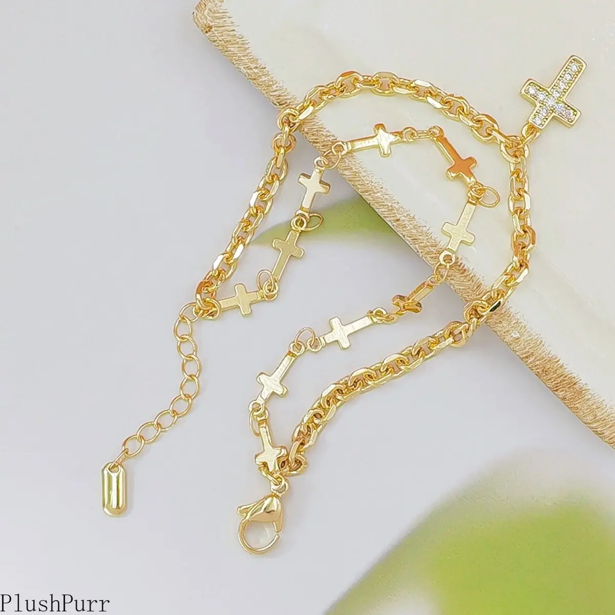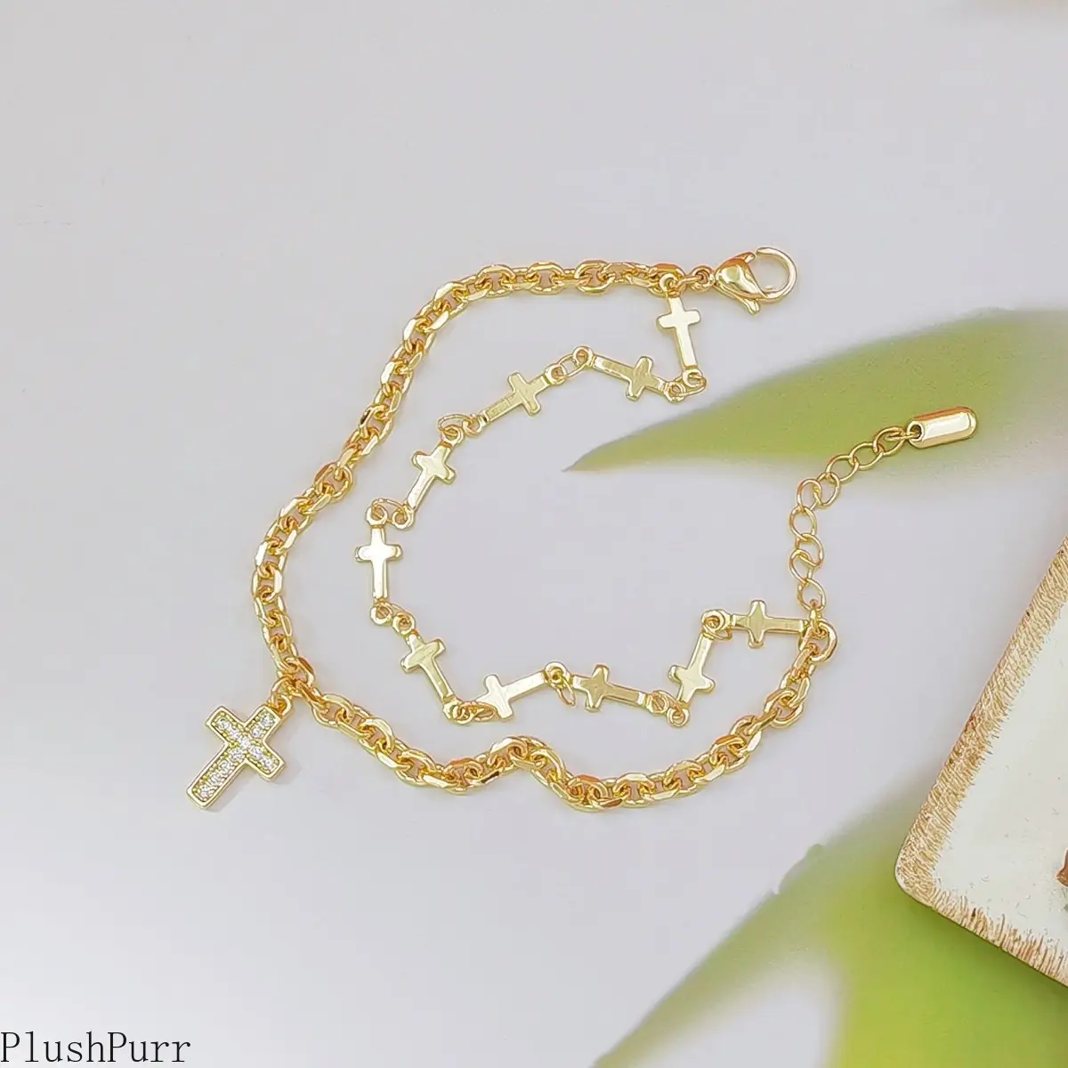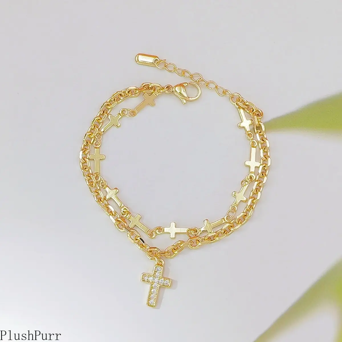 2026 Layered Cross Bracelet—Exuding a chic, high-end aesthetic, this versatile piece is easy to style and perfect for everyday wear, making it an ideal gift for Mother's Day and various other occasions.