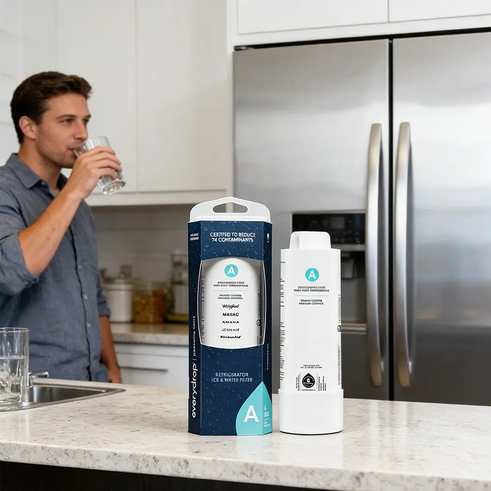 EveryDrop EDRARXD1 Refrigerator Water Filter – Filter A for Whirlpool & Maytag – UL Certified to Reduce 74 Contaminants – Each 200 Gal / 6 Months – 1 Year of Clean Water – Save vs. Bottled Water