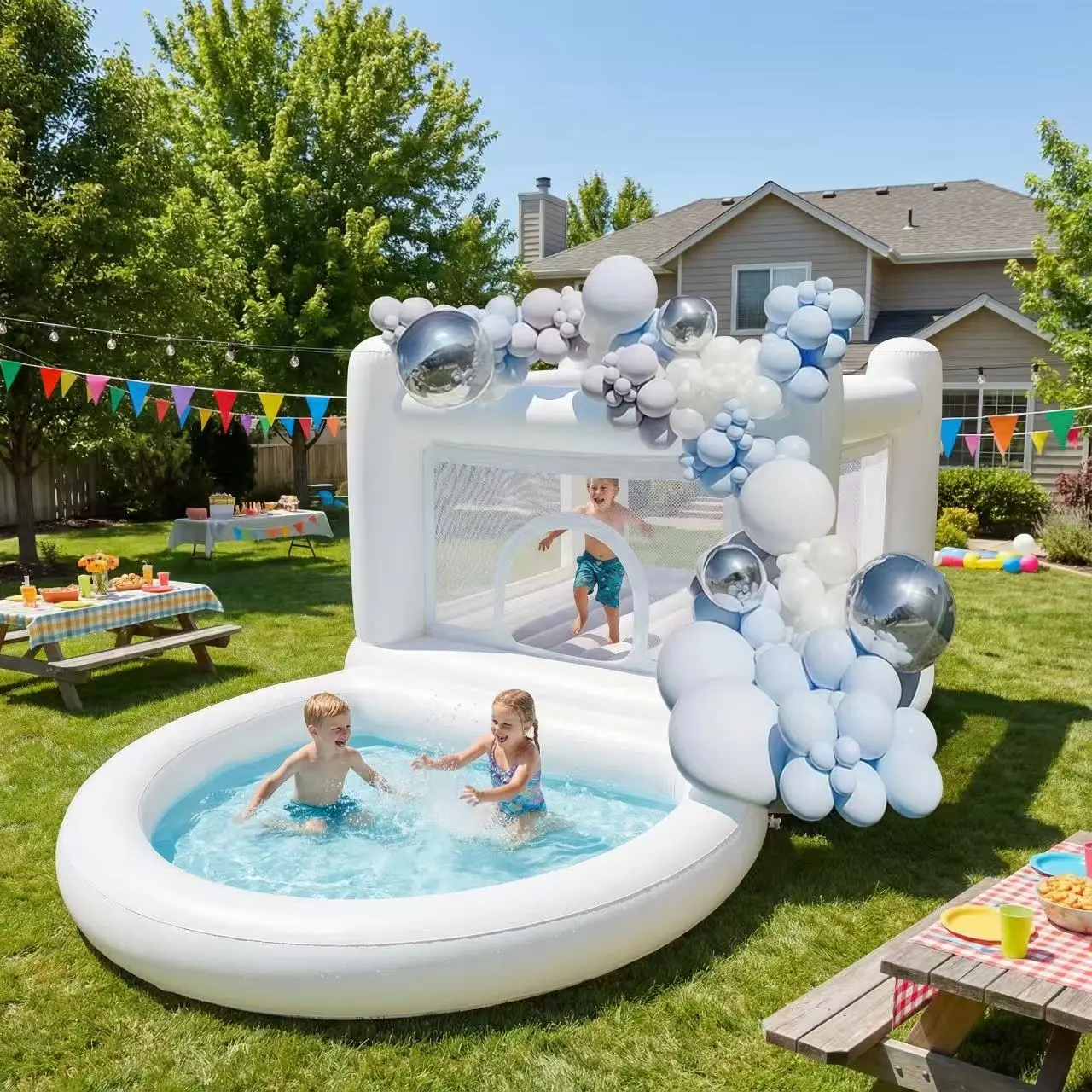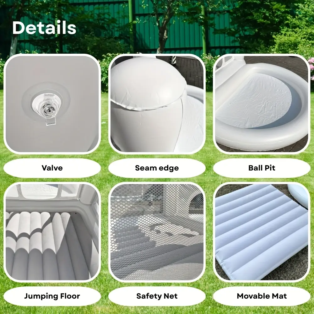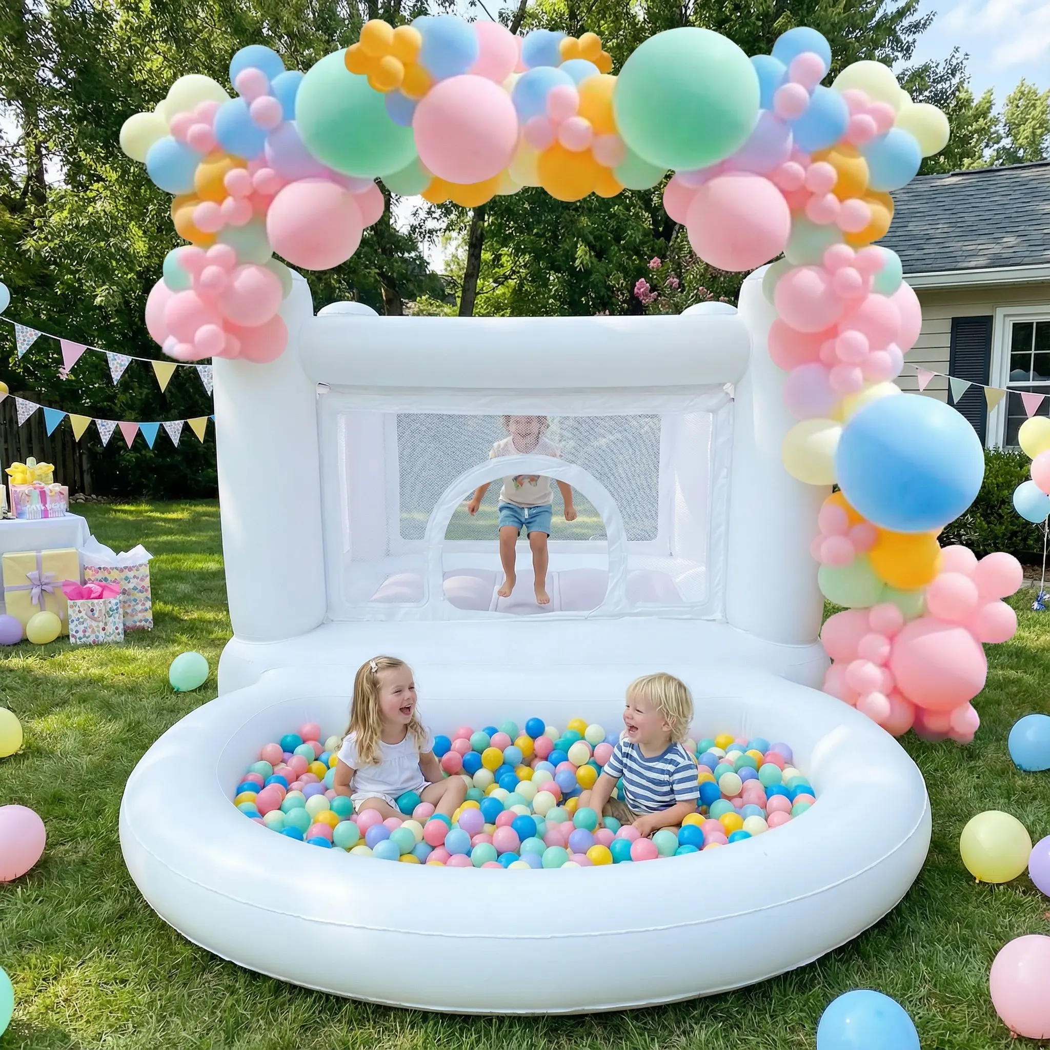 White Bounce House for Kids Indoor Bouncy Castle with Pump Toddler Bounce House PVC Waterproof Materials Easy to Clean Outdoor Toddler Toys White Bounce House With Ball Pit Indoor Playhouse Bouncy Castle Outdoor Playhouse Inflatable Yard Decorations
