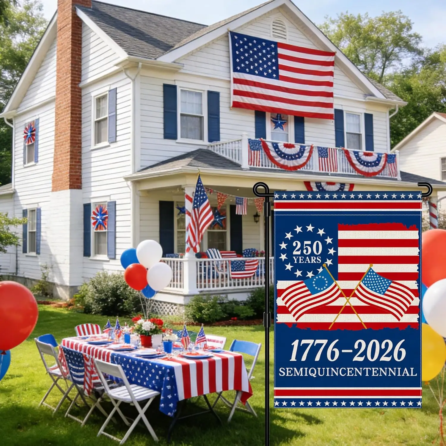 250th Anniversary America Garden Flag, 250 Anniversary USA Flag 1776-2026 Commemorative Patriotic 250 Years Banner 4th of July Yard Sign Double-Sided Waterproof Garden Flag 12x18 Inch