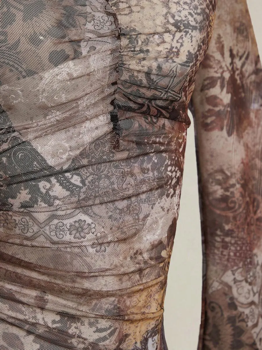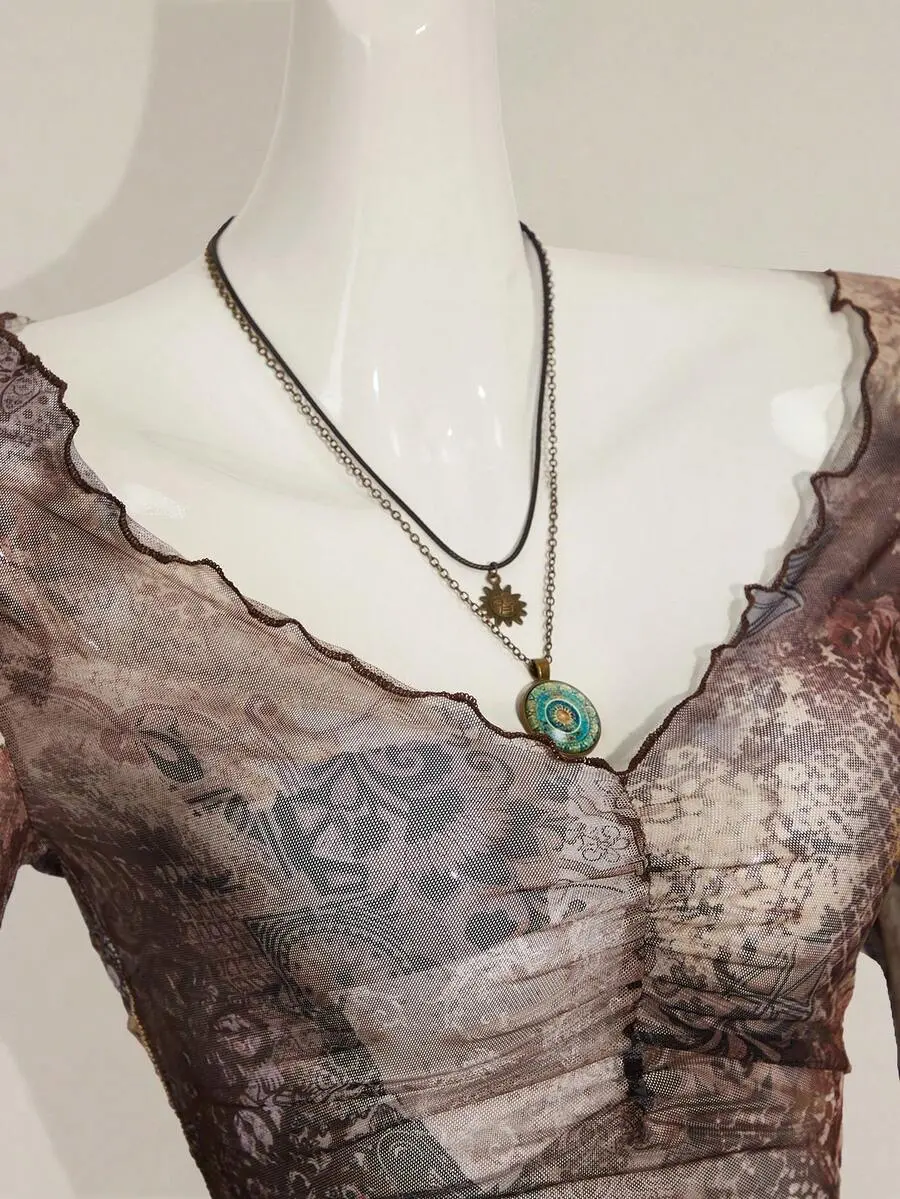 SOLEMN Vintage Jacquard Print Ladies Pleated Camisole Top Mesh Bachelorette Summer Vacation