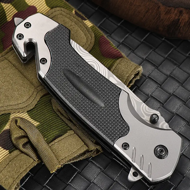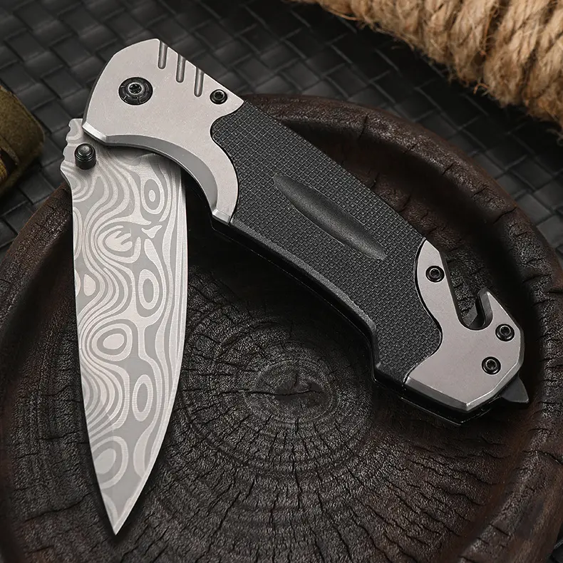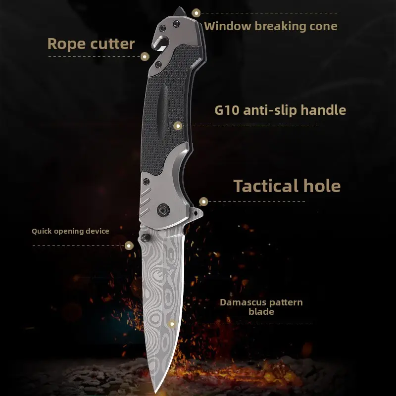 Damascus Tactical Survival Knife G10 Handle Camping Folding Knife Stainless Steel Outdoor Pocket Knife
