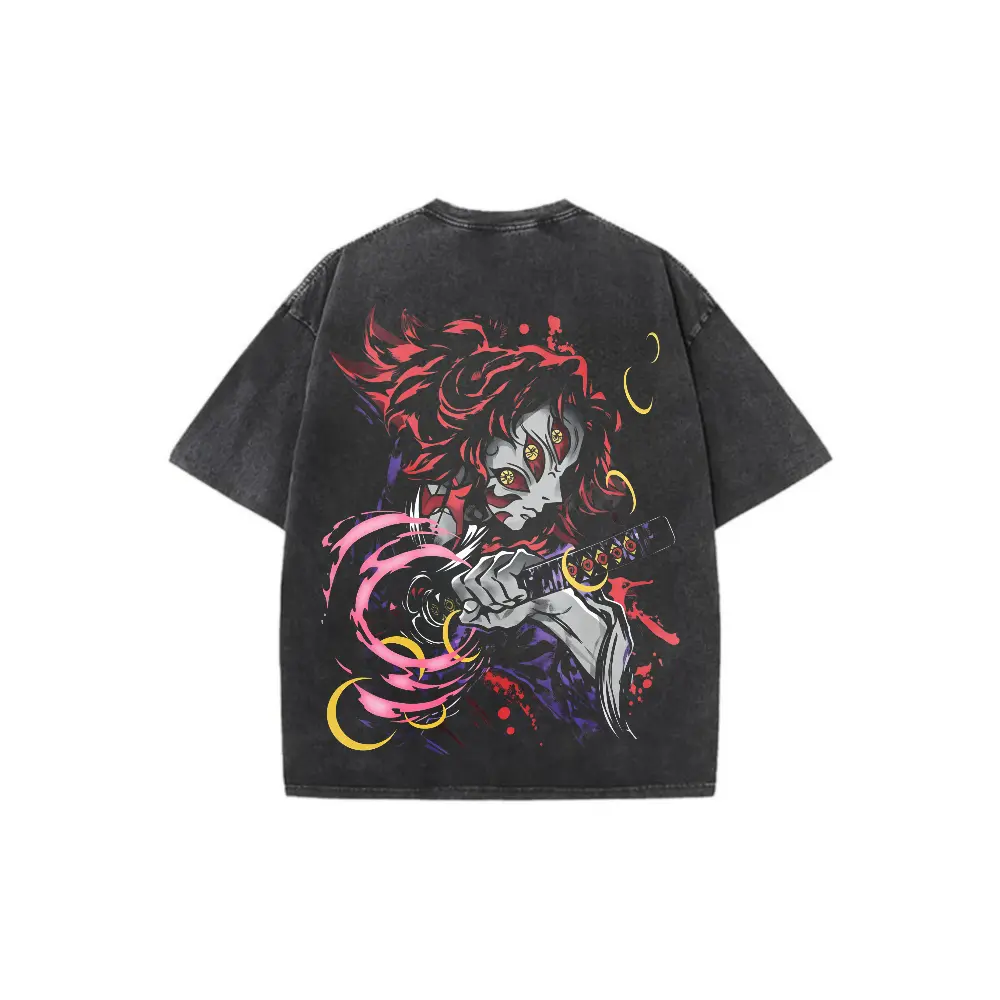 This oversized acid-washed cotton t-shirt is a must-have for anime manga fans. It features a striking graphic of Kokushibo from the Infinity Castle Arc. Perfect for Harajuku street style, it offers a soft, comfortable fit. Ideal for casual everyday wear, it's a great gift for enthusiasts. The tee combines style with comfort, making it a versatile addition to any wardrobe.