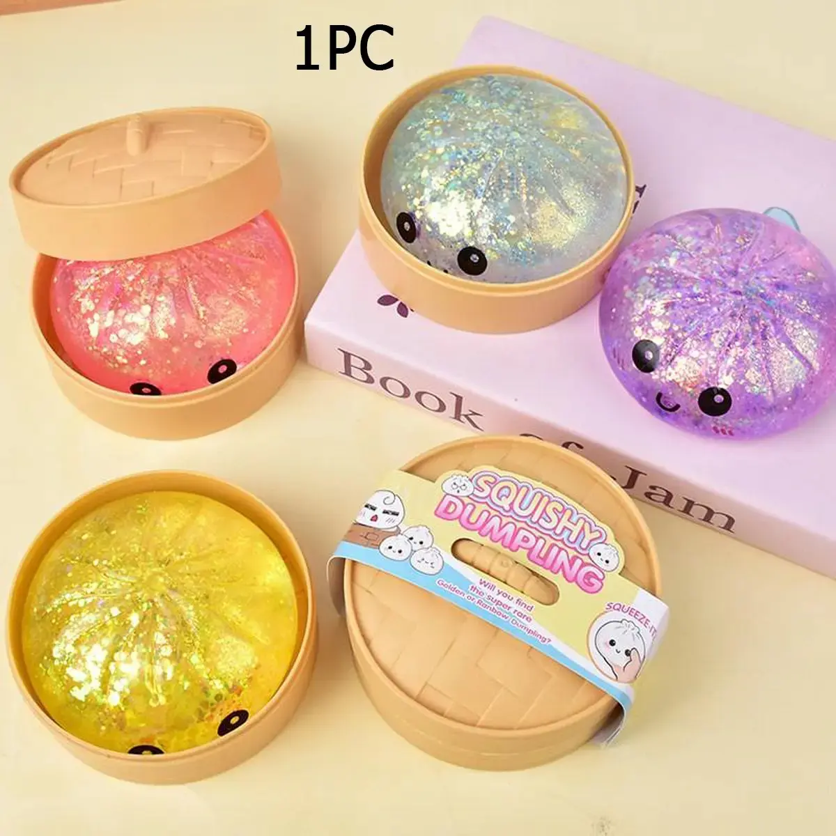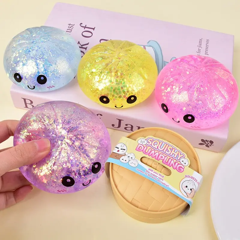 This giant glitter dumpling toy is perfect for stress relief. Ideal for adults and children, it offers a satisfying squeeze experience. 🧸 No batteries needed, it's uncharged and plug-free. Recommended for ages 12 and above. Made from TPR material, it's stretchy and fun.