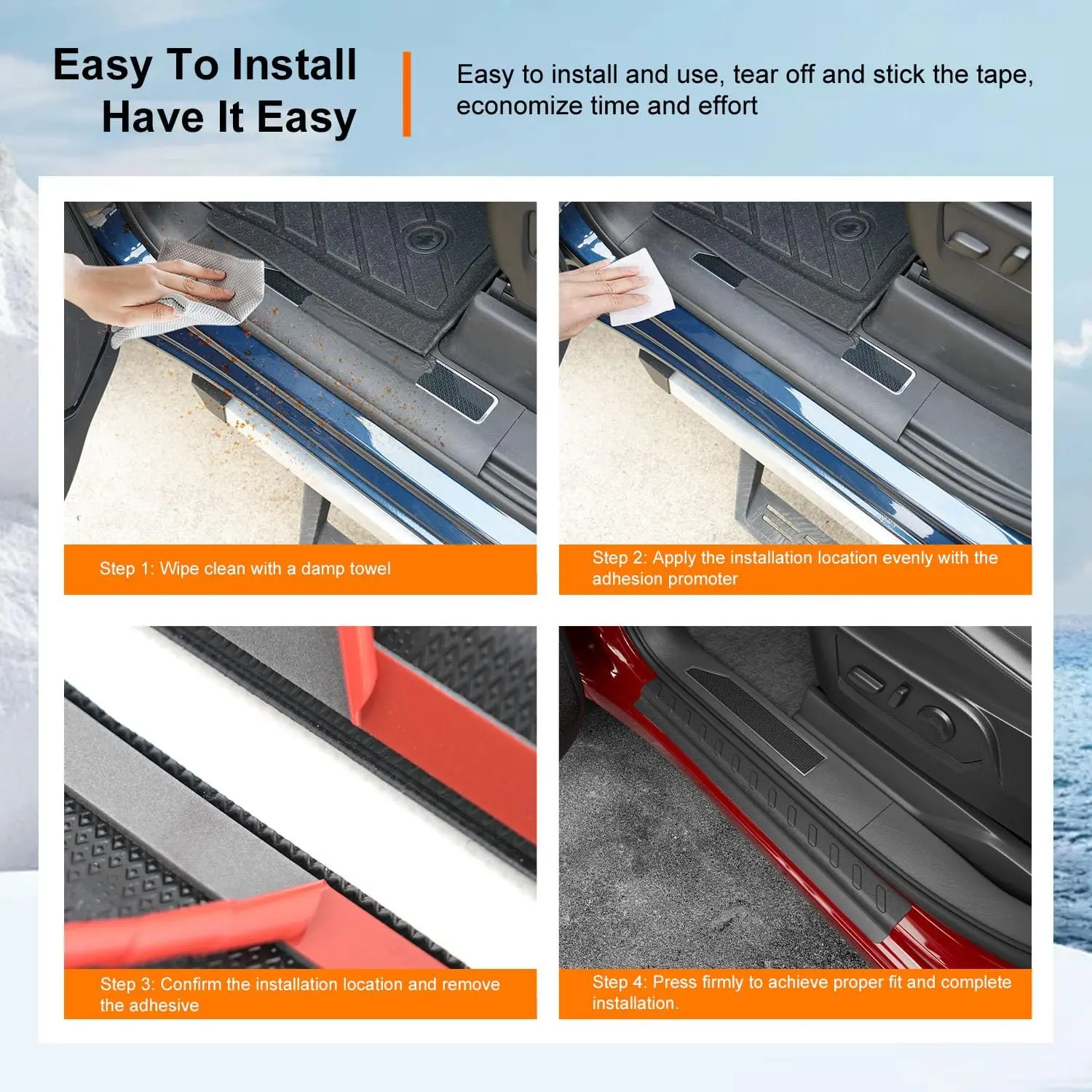 ·Simple Installation: The installation process of our guard replacement for 2019-2026 Silverado entry guard is very easy. Please wipe the installation position clean before installation. You just need to put the door sill guard protector in the right place. It has self adhesive in the back. The whole process takes only a few minutes. Here are two tips when installing, which will make it stay on better. 1.Adhesiveness is weaker when the temperature below 10℃(50℉), using hair drier to heat the thermal double-sided adhesive will be better. After the installation finished, the adhesive tape does work in low temperature. 2.Please do not touch water after pasting within 48 hours.