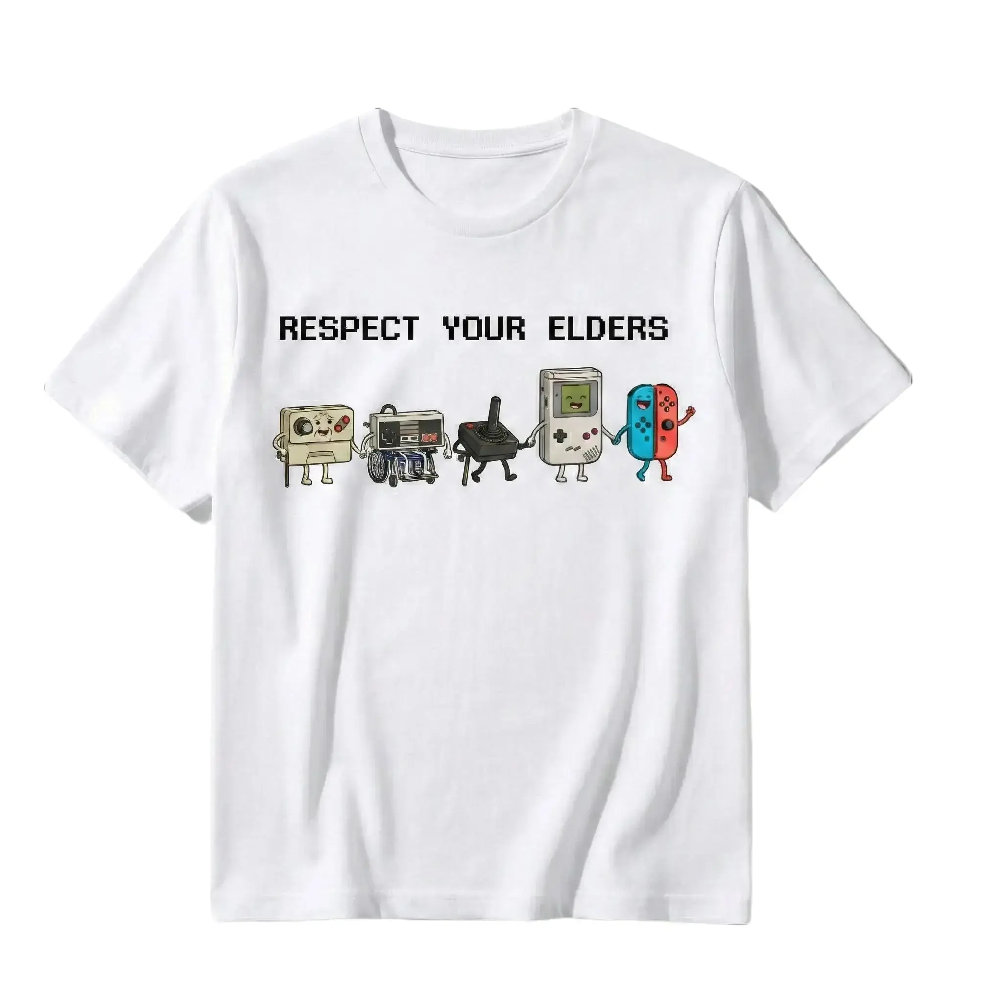 ✨ Nostalgic Design: This T-shirt features a "Respect Your Elders" graphic, perfect for fans of 80s and 90s pixel art. The controller graphic adds a classic gaming touch. Ideal for gamers who cherish retro vibes.
