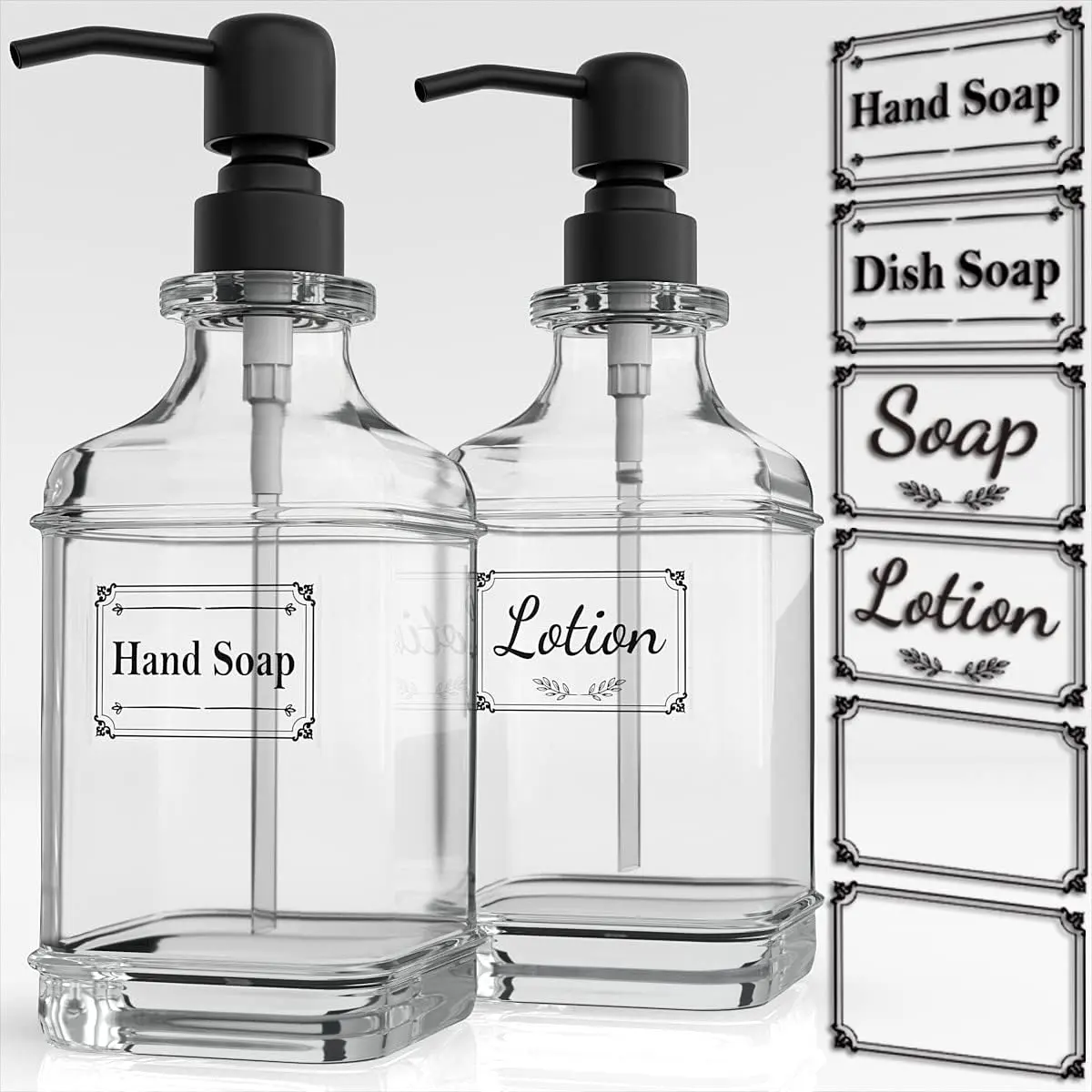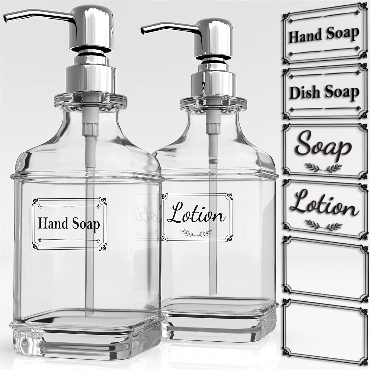 Waterproof Stickers Included "Soap", "Dish Soap", "Hand Soap", "Lotion" and 2Pcs Clear Stickers.Adjustable And Removable, Give Your Countertop Luxurious Feel.