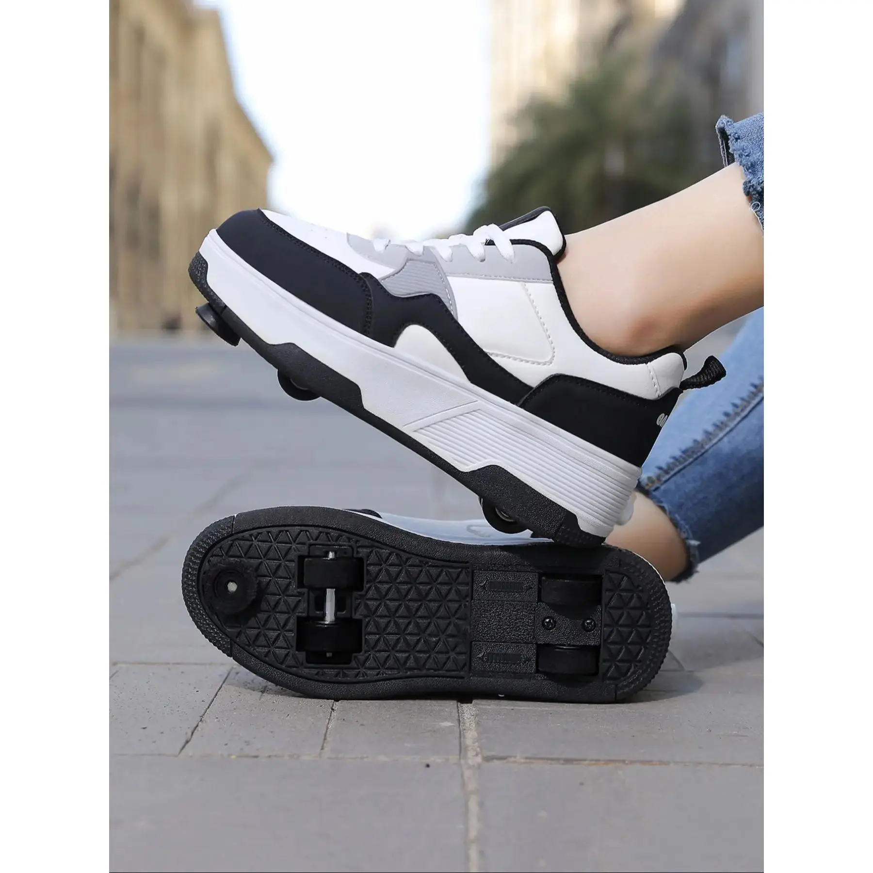 [Dual Functionality]: This product features detachable wheels, allowing the shoes to transform from roller skates to regular sneakers effortlessly.