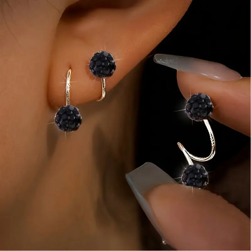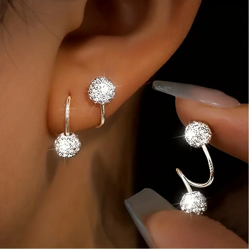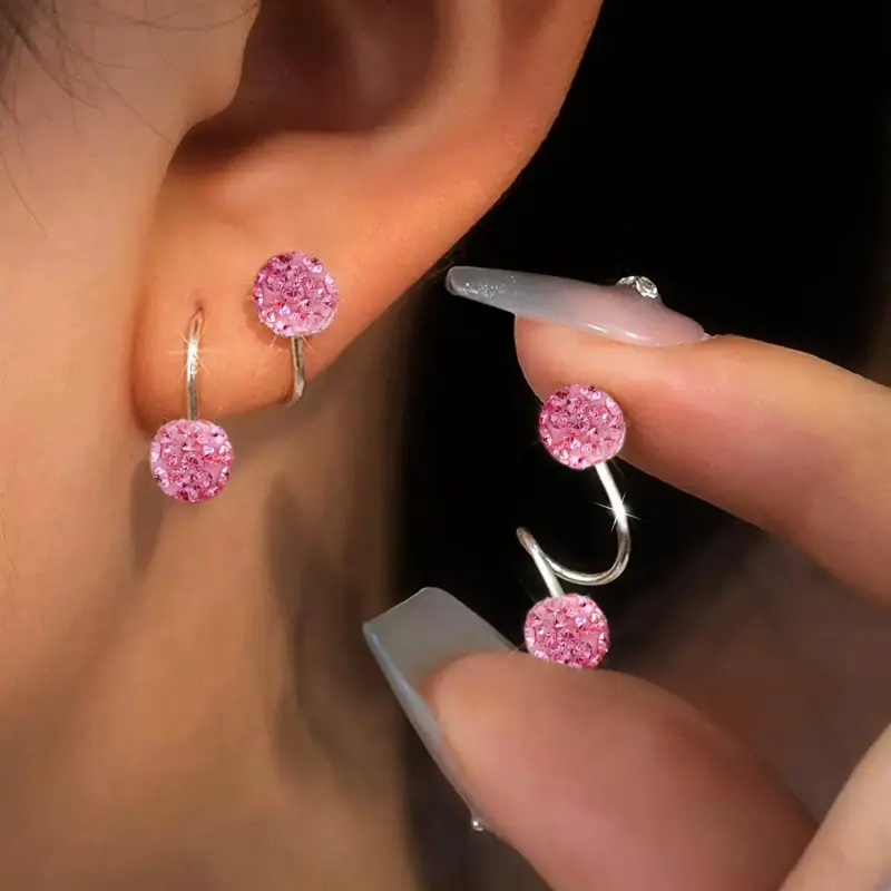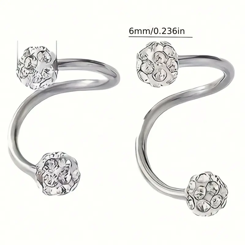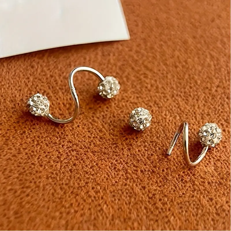 A pair of light-luxury style double-headed screw-on rhinestone ball earrings, unique pierced S-shaped studs, the perfect gift for her