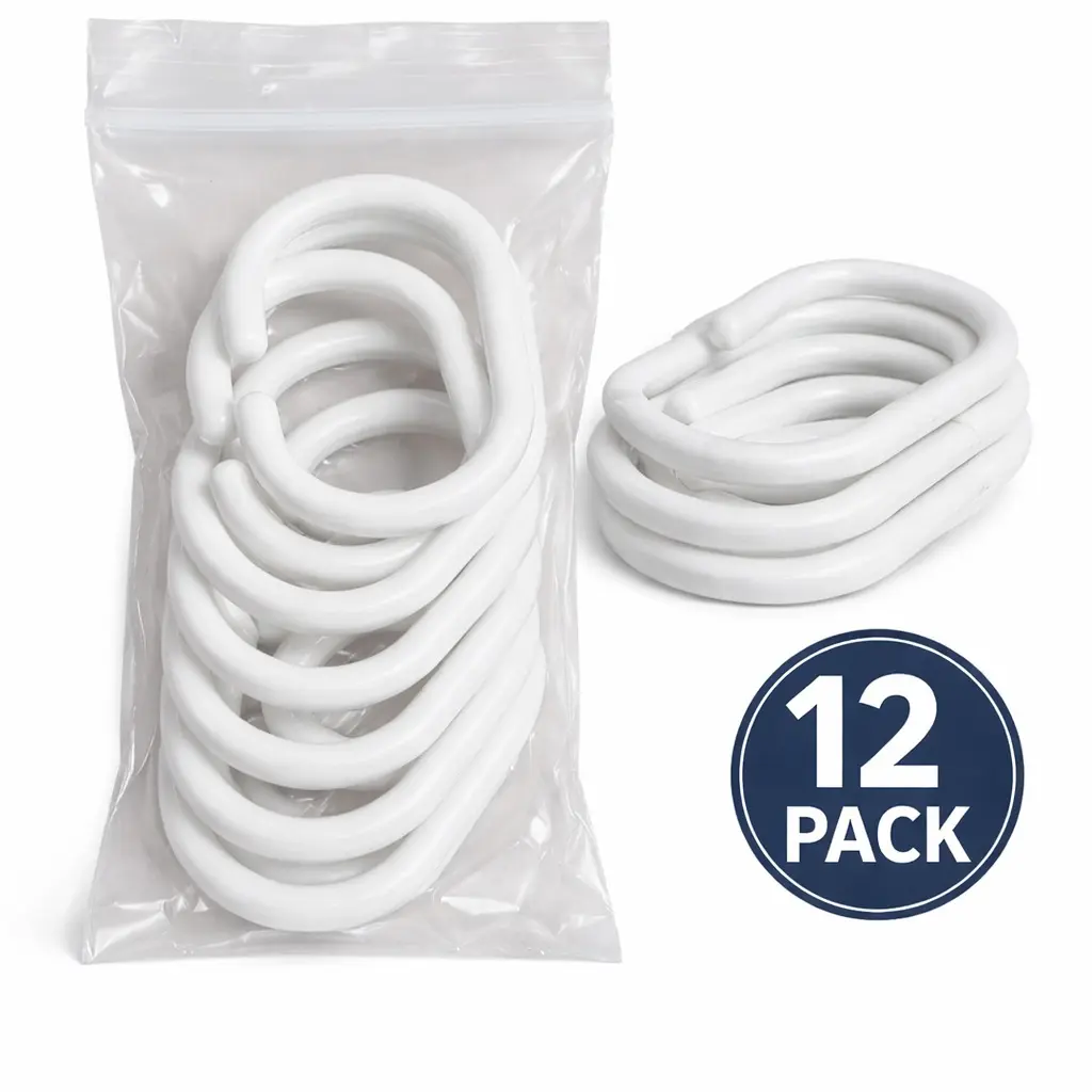 Upgrade your bathroom with this 12-pack of shower curtain hooks designed for smooth daily use. Made from durable plastic with an open design, these hooks are easy to install and remove in seconds. They glide smoothly across most standard shower rods without snagging, scratching, or making extra noise. Lightweight yet sturdy, they help keep your shower curtain securely in place while giving your bathroom a clean, simple look. A practical choice for home bathrooms, apartments, guest baths, hotels, and more.