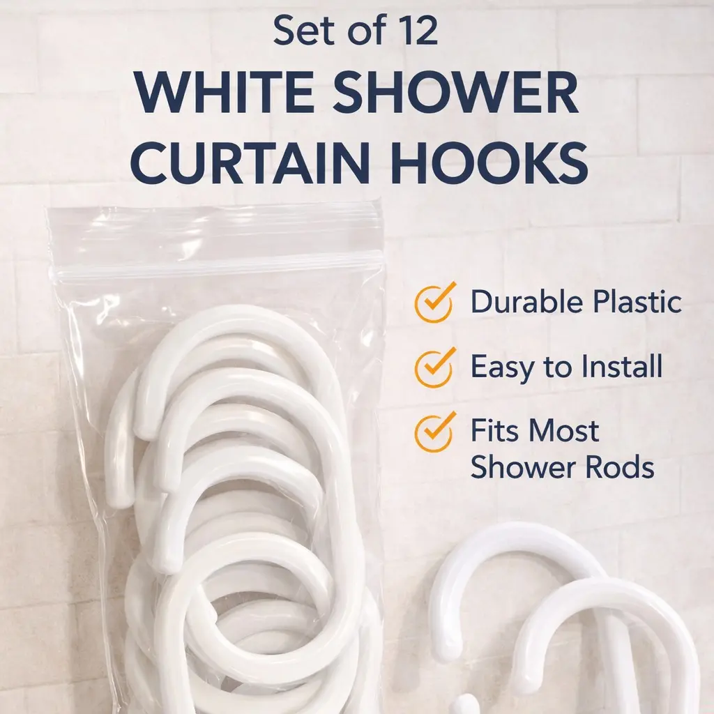 12-Pack Rust-Resistant Shower Hooks Smooth Glide Durable Plastic Universal Fit for Bathroom Easy Install Remove Lightweight Sturdy
