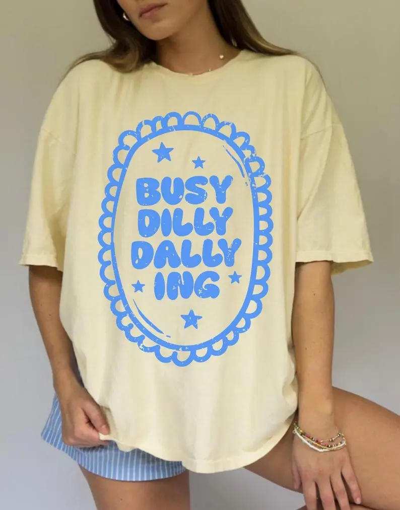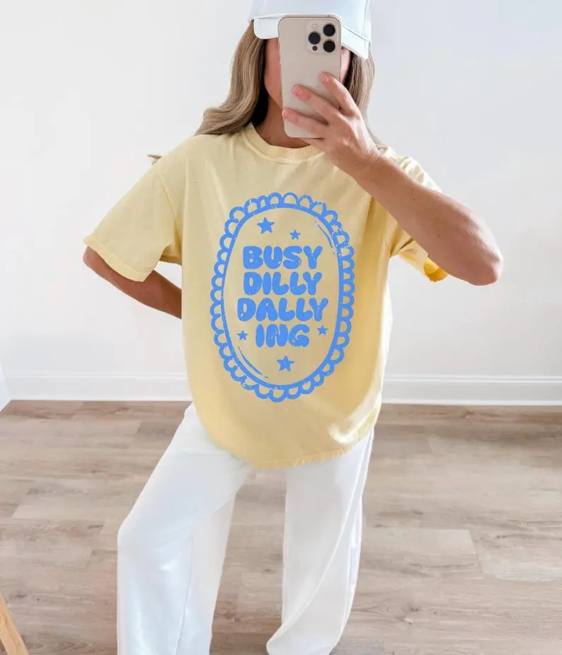 Comfort Colors Dilly Dally TShirt Trendy Graphic Tee Retro Oversized Women’s T-Shirt Aesthetic Comfort Colors Tshirt Preppy