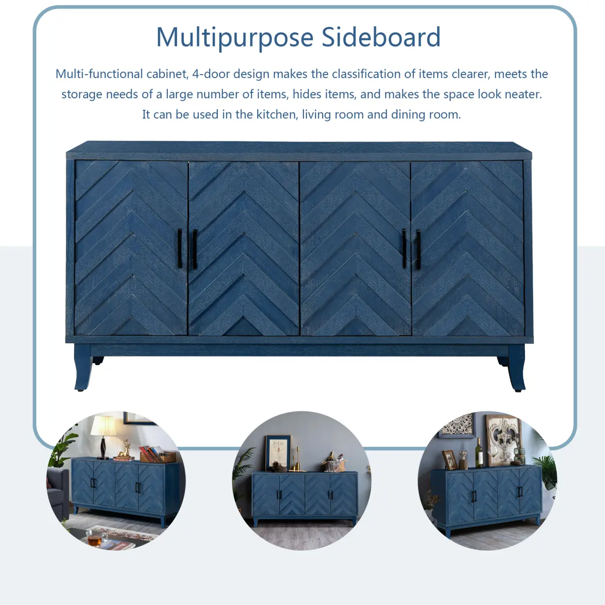 4 Doors Storage Wooden Cabinets 3D Wave Stripes Console Table Sideboard