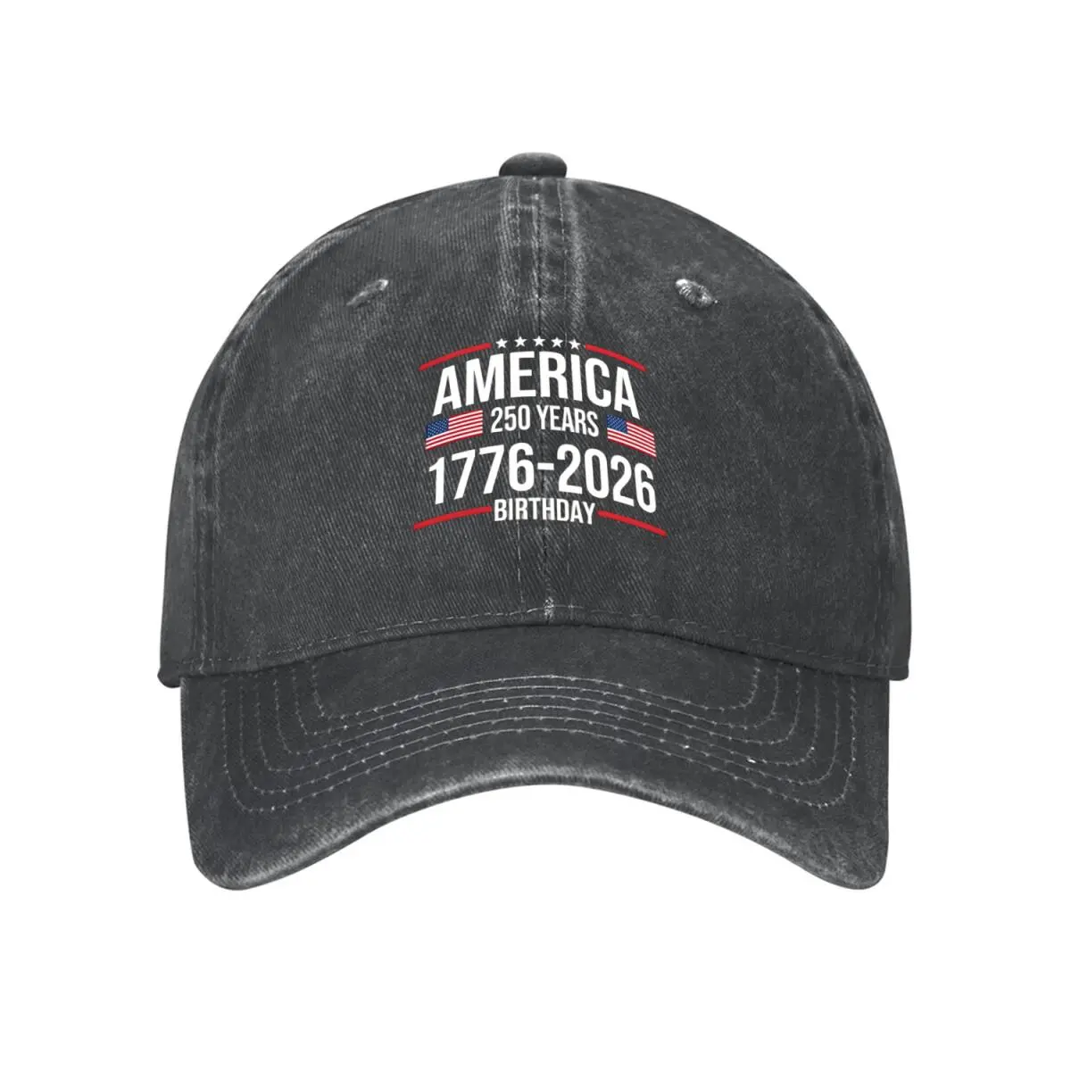 100% Cotton America 250 Years Birthday 1776-2026 Graphic Adjustable Vintage Washed Dad Hat Sun Protection for Outdoor Activities