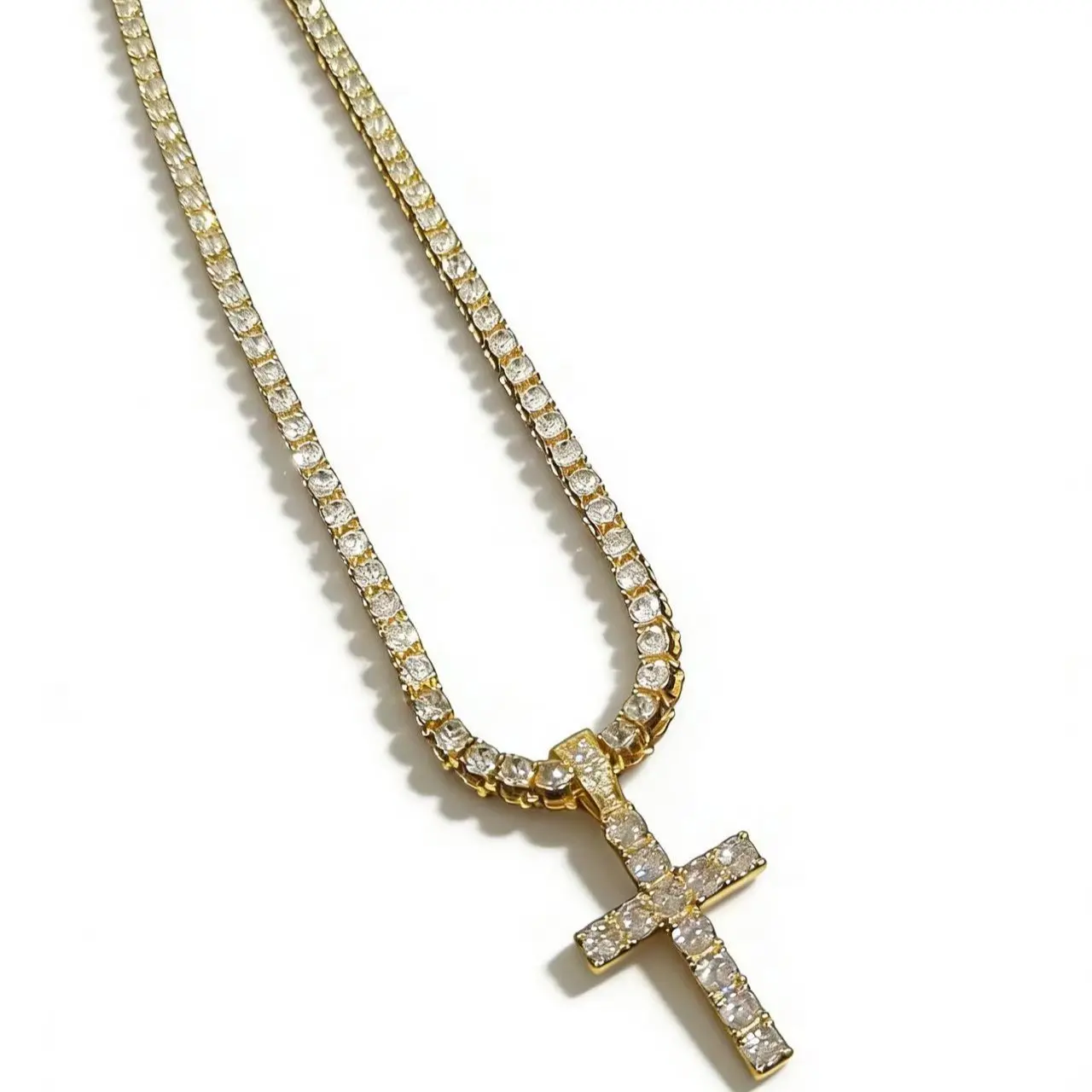 Cross-shaped studded 24in necklace