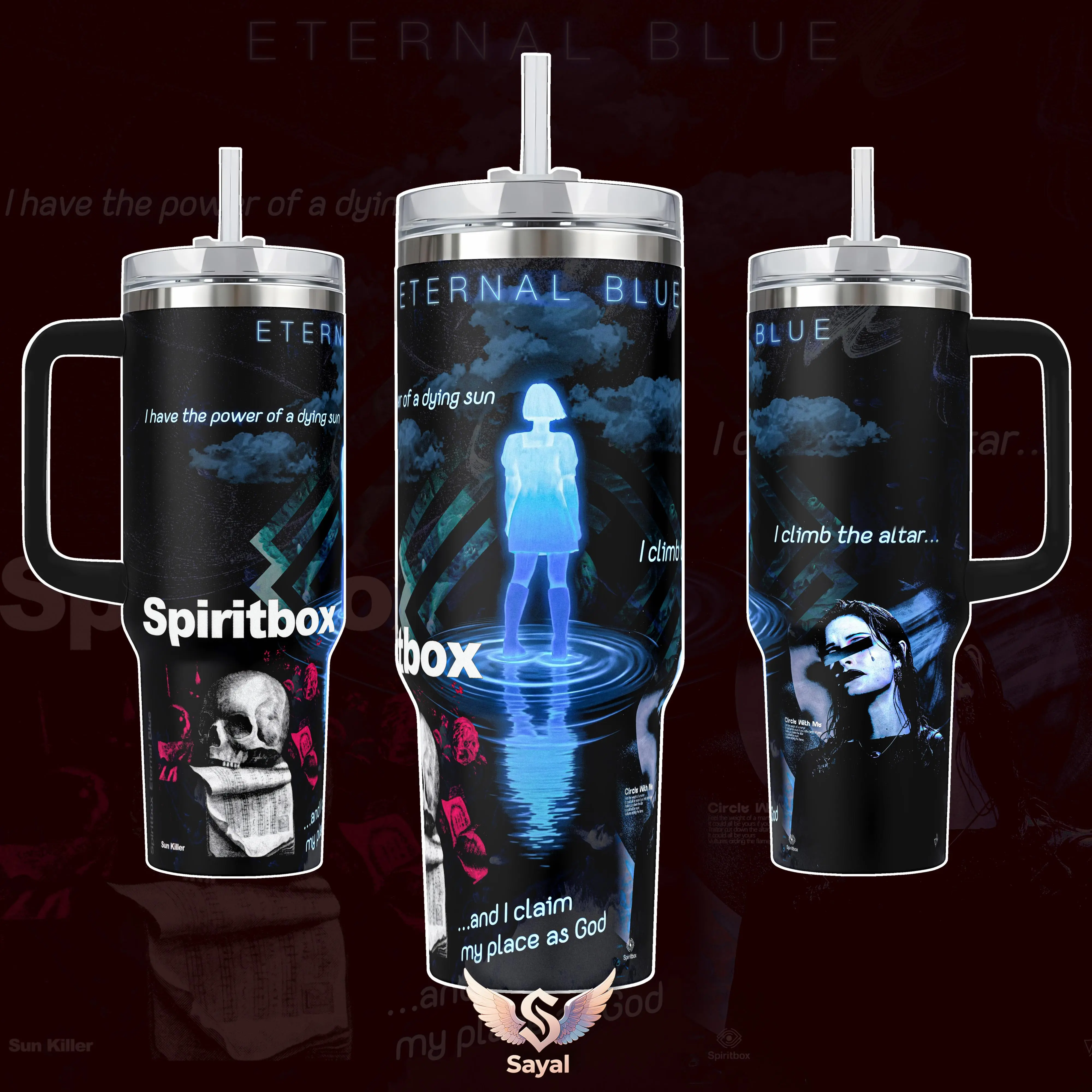 Eternal Blue Album - Spiritbox 40 oz Tumbler I Climb The Altar Lyric Graphic Design Vacuum Insulated Travel Mug with Handle 18/8 Steel Keeps Drinks Cold 12H+ Hot 6H Canadian Metal Band Merch Concert Goers Alternative Rock Fans Festival Gift