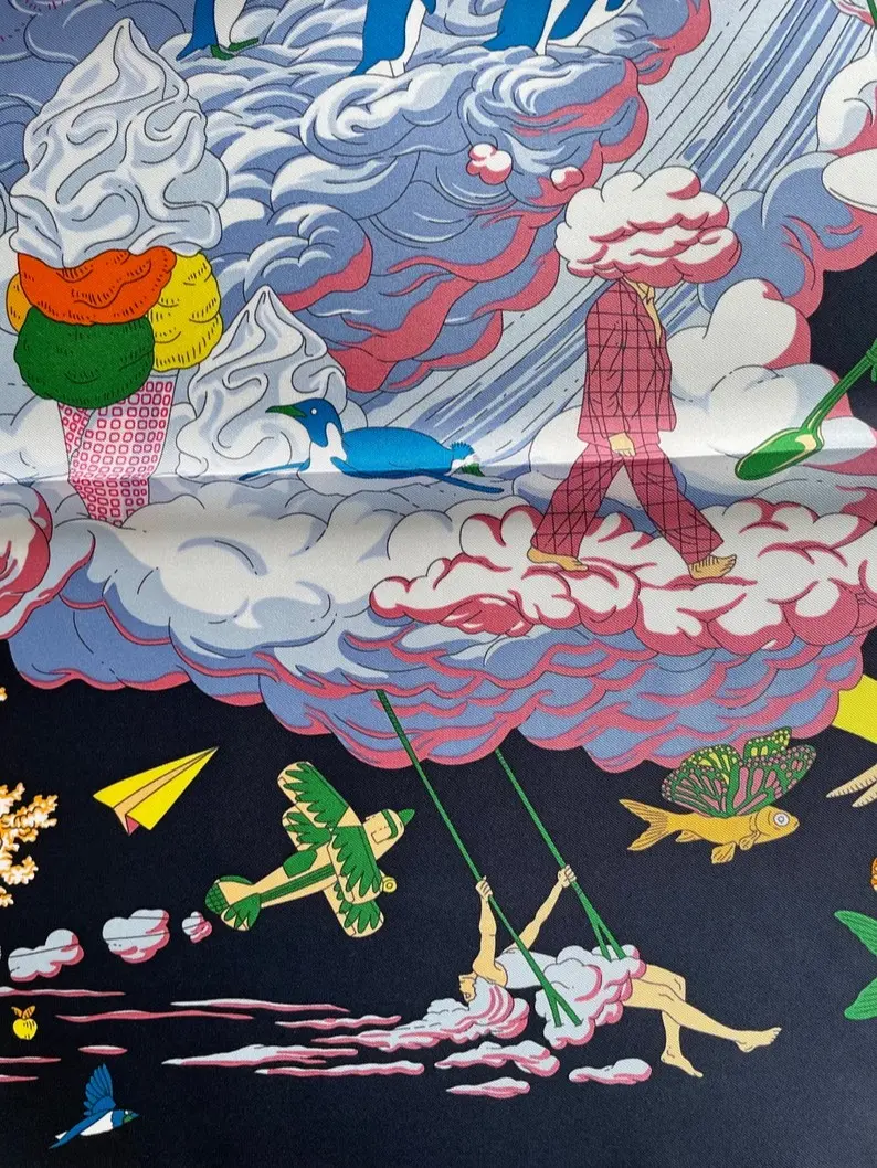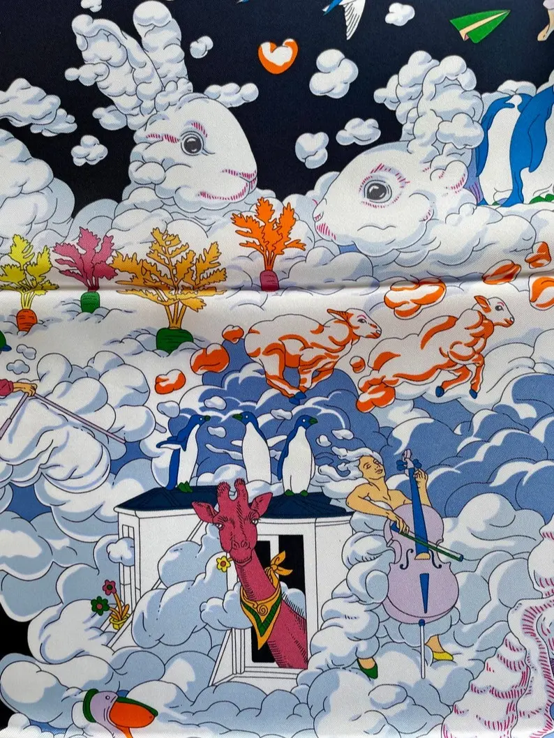 Pillowy clouds with whimsical creatures and happy characters celebrating the beauty of life in the baby blue sky. So much fun to play in the clouds.