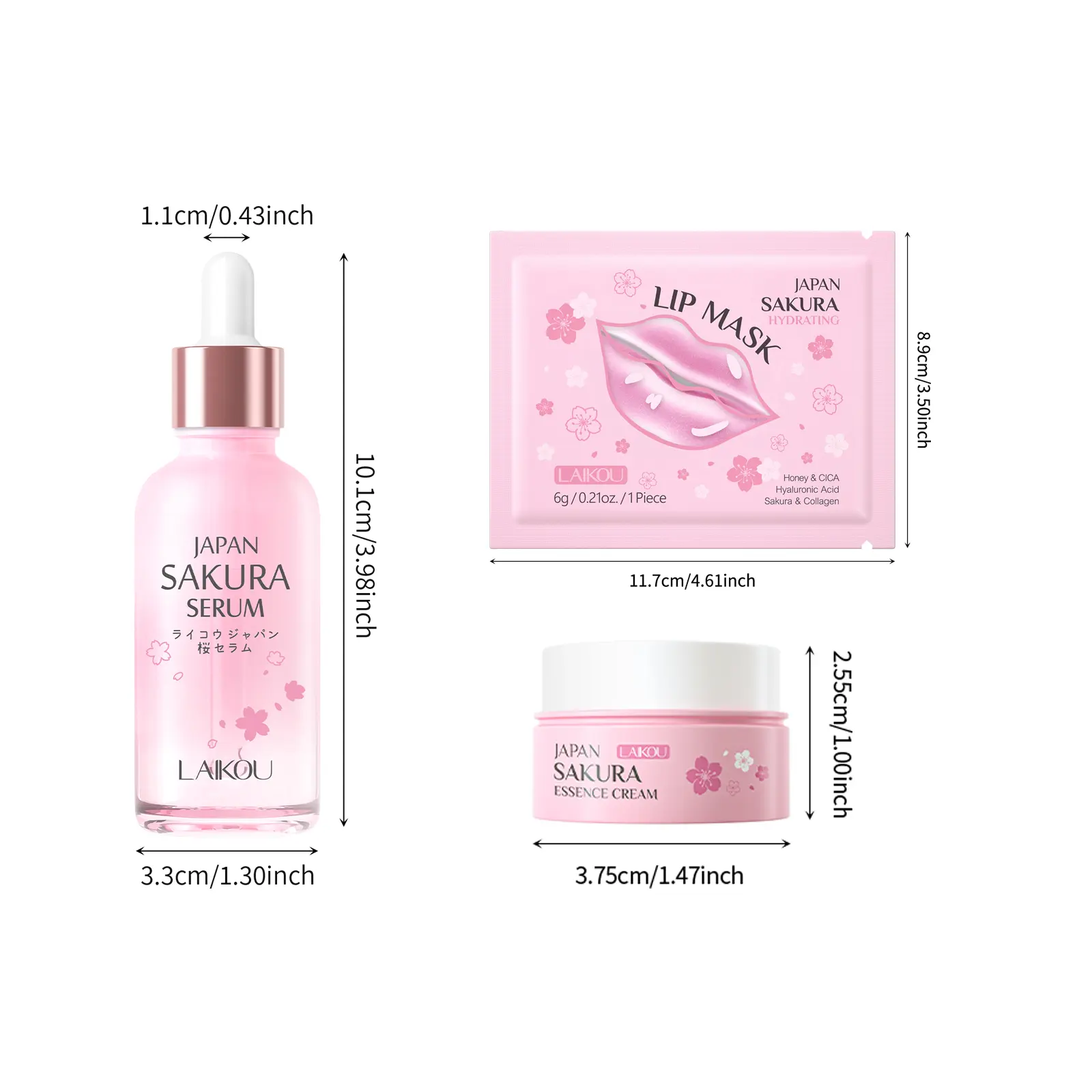 LAIKOU Japan Sakura Serum 30ml , Day & Night Use with Sakura Extract, Niacinamide & Hyaluronic Acid, Lightweight Fast Absorbing for Hydrated Glowing Skin