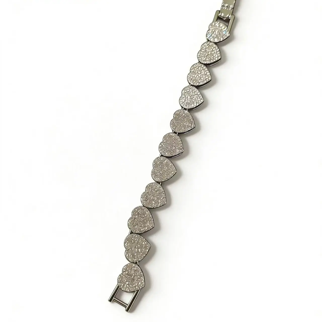 A money bag pendant studded with gemstones is paired with a 24-foot-long heart-shaped necklace.