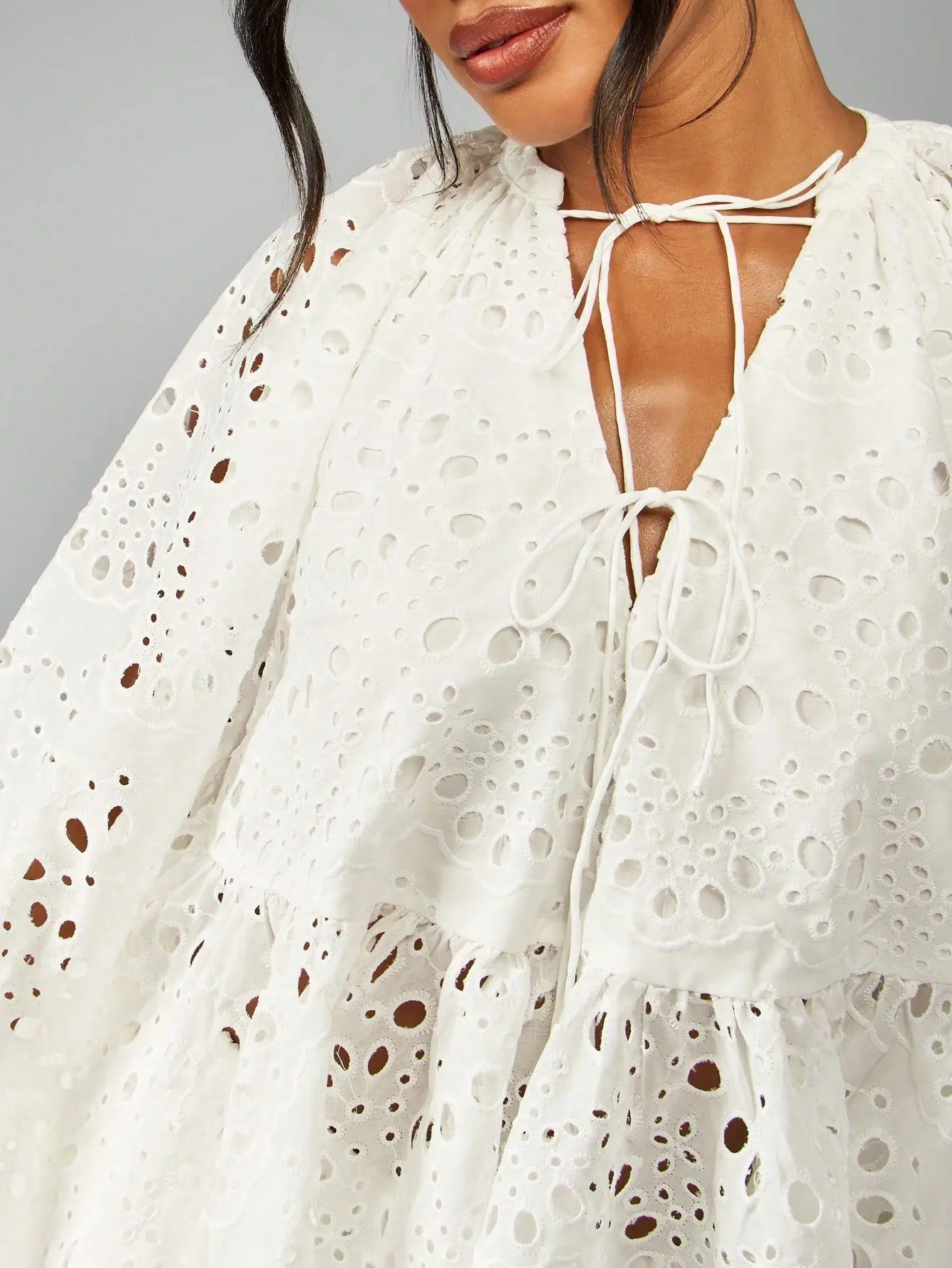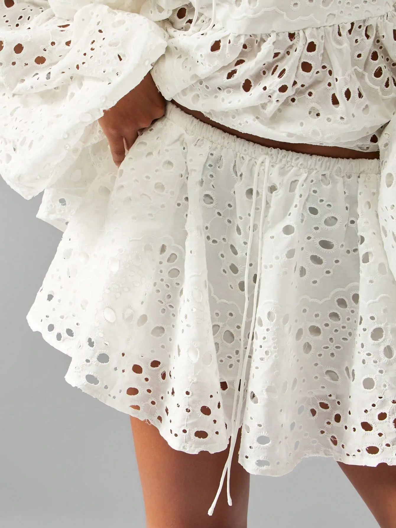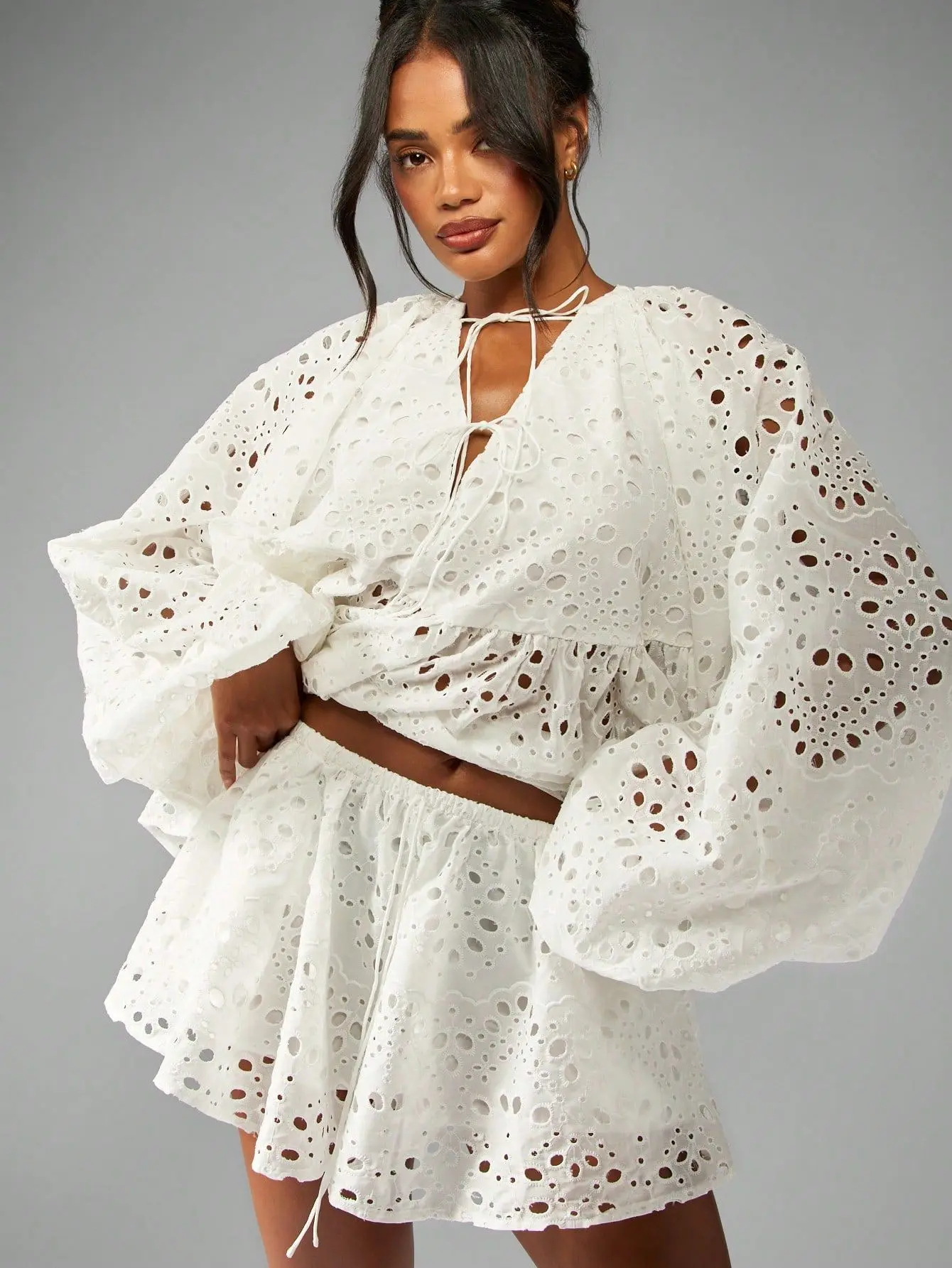 5. MISSGUIDED Broderie Anglaise Boho Two Piece Outfit With Balloon Sleeves And Drawstring Details