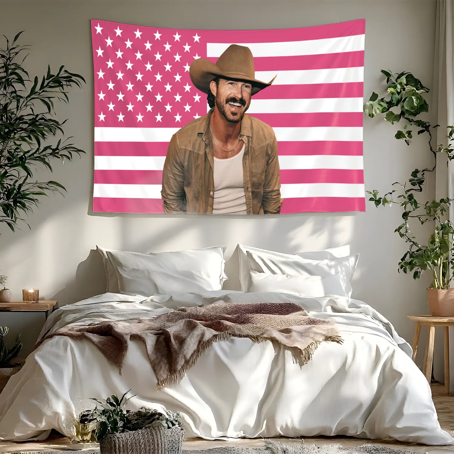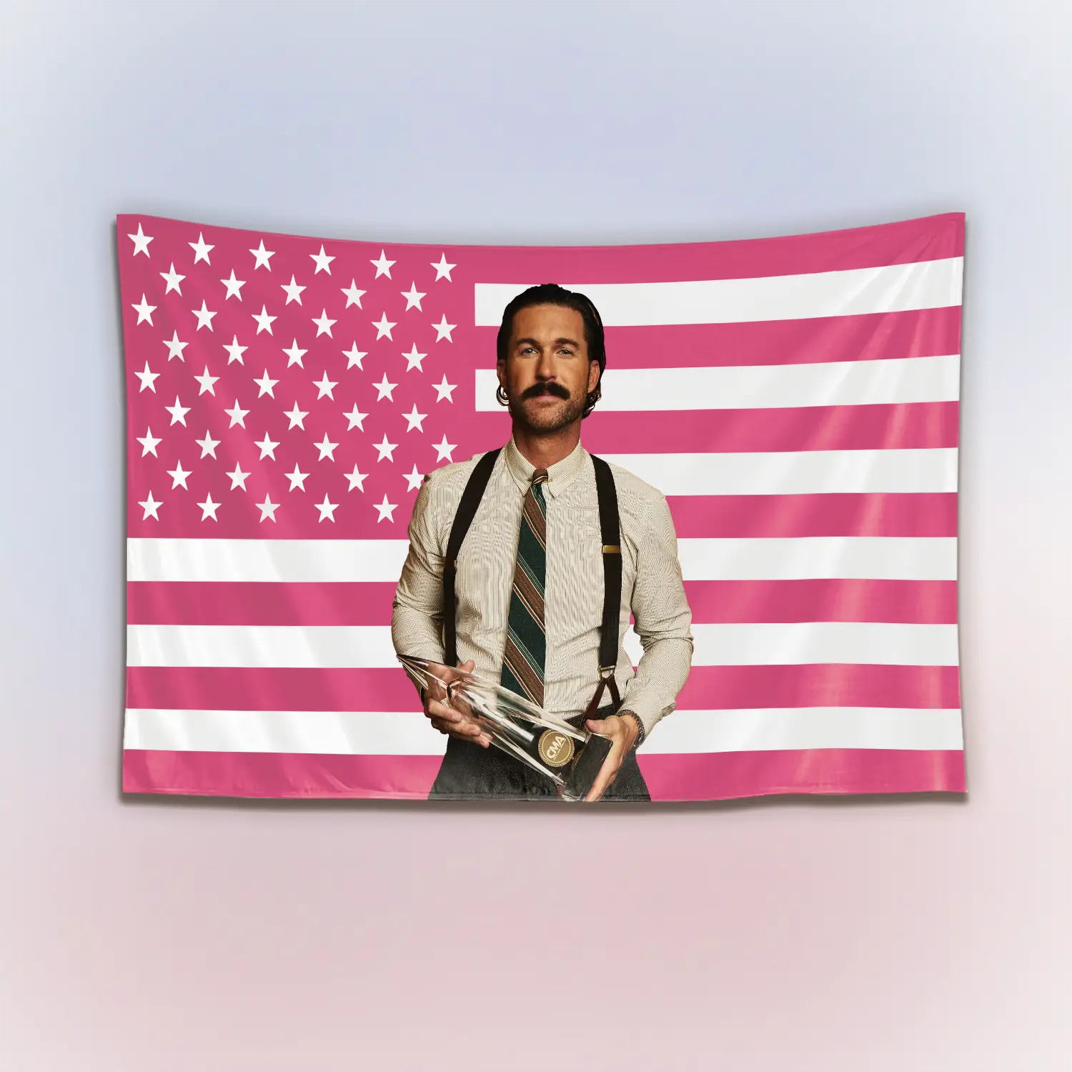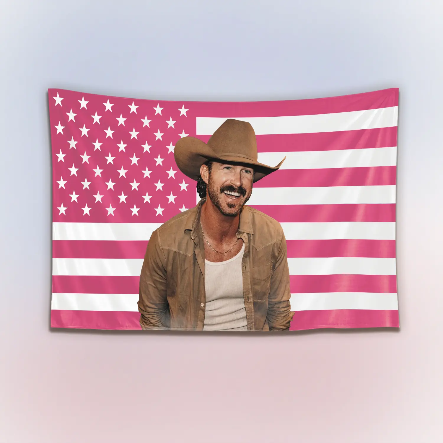 Riley Green Pink USA Flag Tapestry, Country Singer Wall Hanging Decor, Retro Music Art Banner, Bedroom Aesthetic Wall Art, Gift for Fans