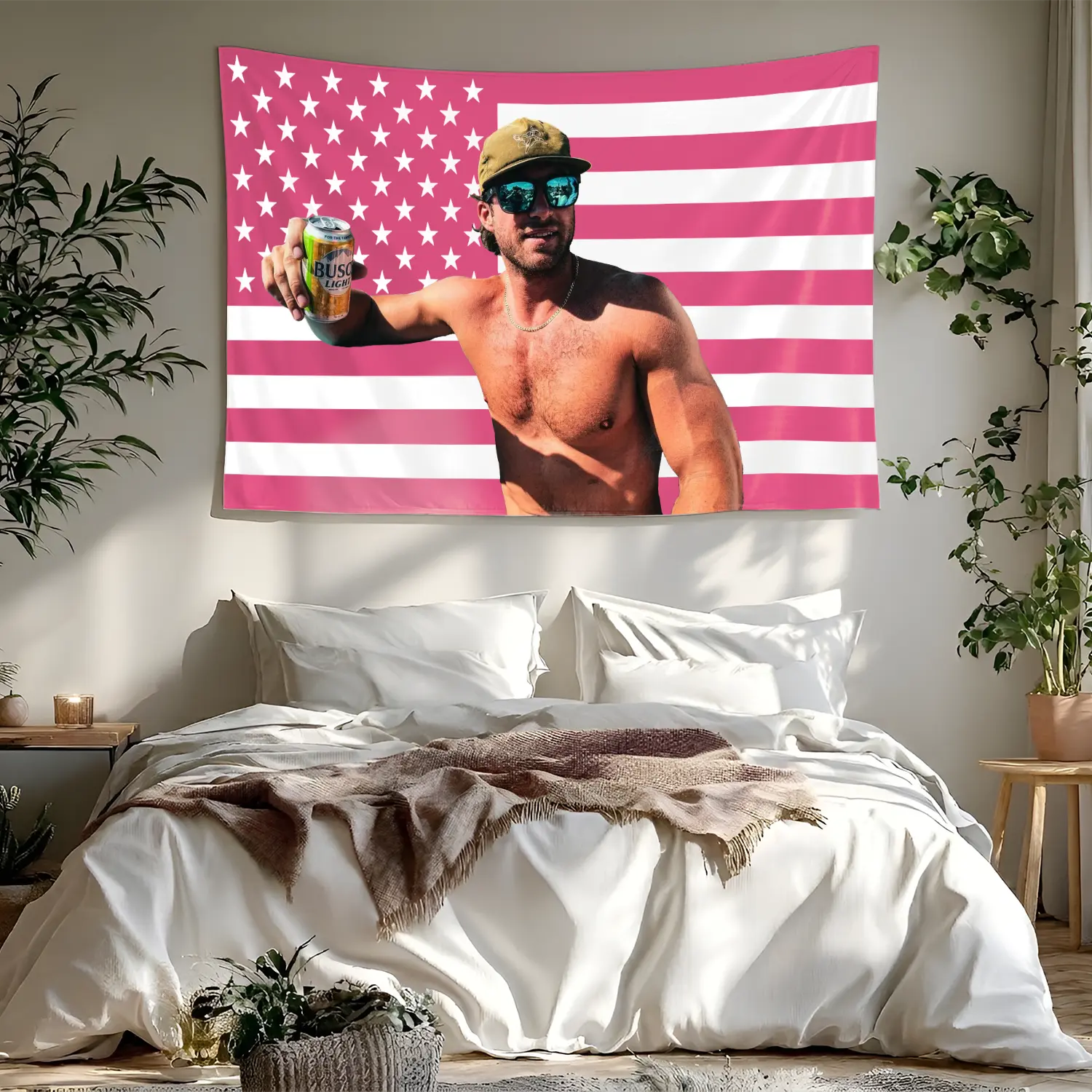 5. Riley Green Pink USA Flag Tapestry, Country Singer Wall Hanging Decor, Retro Music Art Banner, Bedroom Aesthetic Wall Art, Gift for Fans