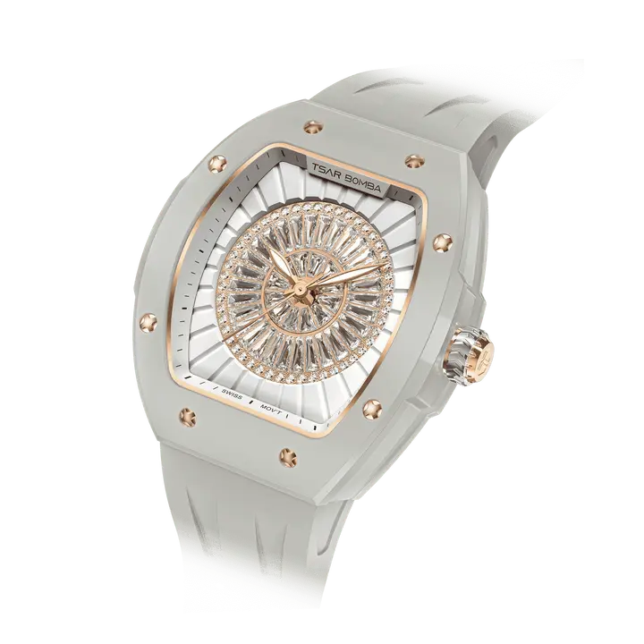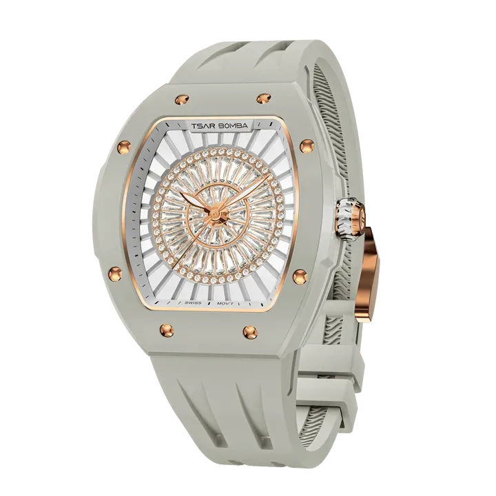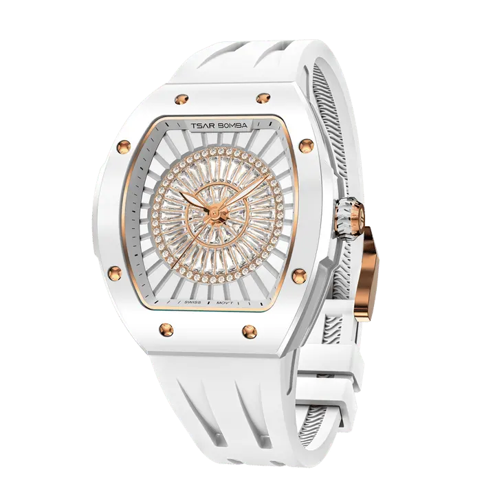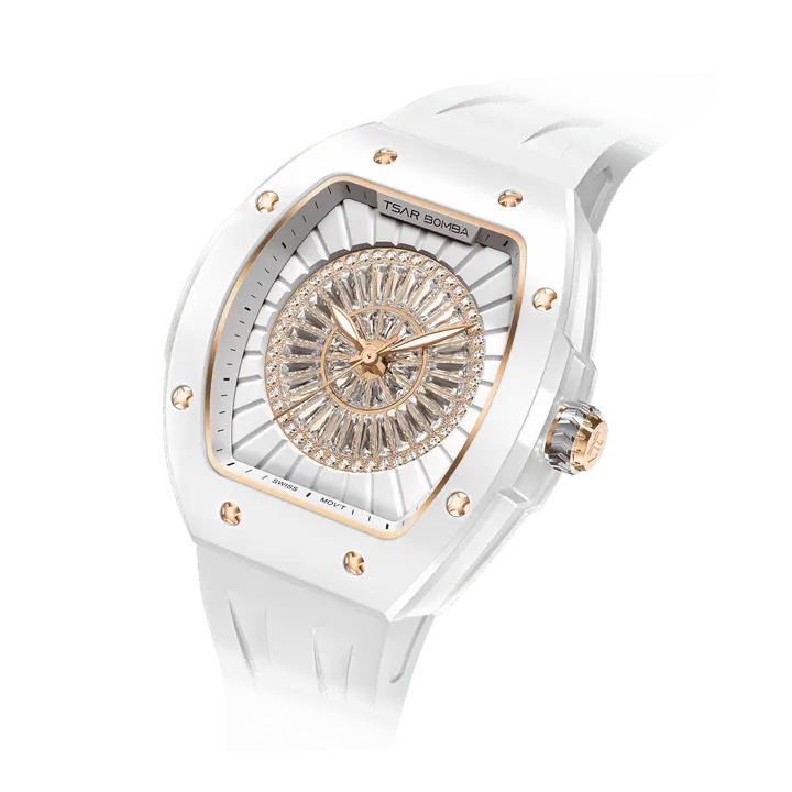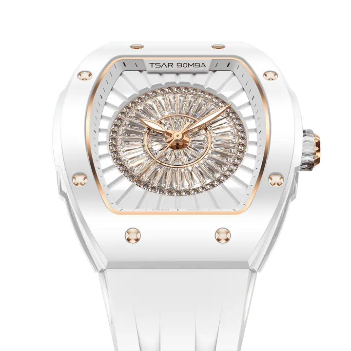 Effortless elegance on the wrist — a timepiece that moves with poise, reflecting refined taste and understated luxury with every gesture.A minimalist dial framed by a dazzling circle of cubic zirconia, capturing light with every turn of the wrist — subtle brilliance, unmistakably luxurious.
