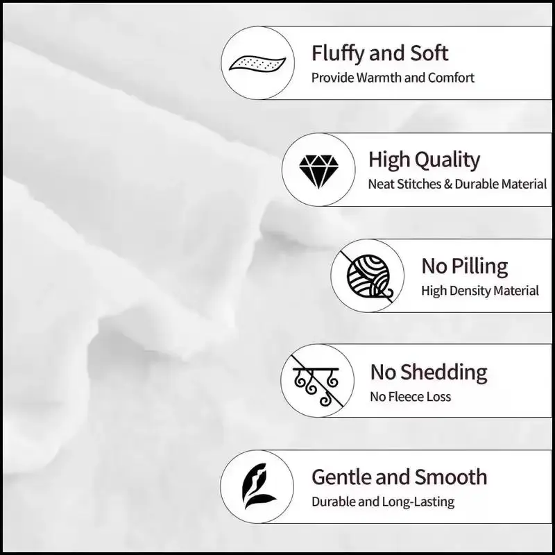 100% polyester with flannel craft- Delicate and soft,non-shedding.Warm in winter, breathable in AC rooms.Gentle on skin, no stuffiness.