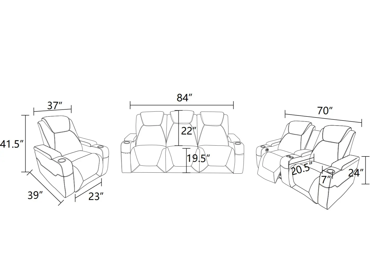 The middle of sofa with reversible coffee table. The table with wireless chargers forphone charging and cup-holder for drinks settlement; the coffee-table with lightingabove, full with careful and ingenious design