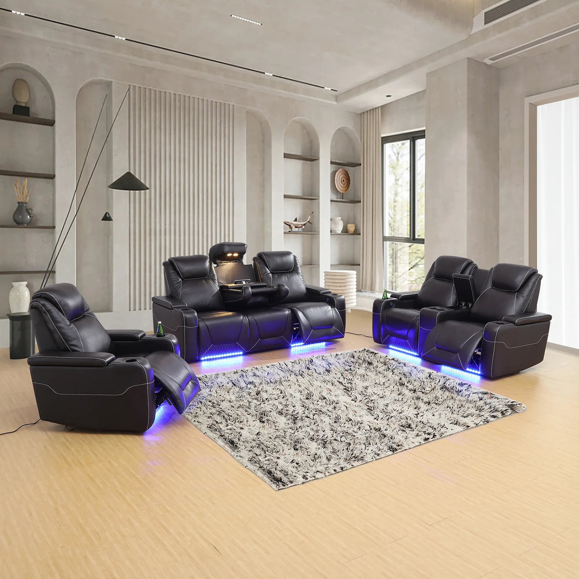 The bottom of sofa with ambient LED lighting, pure white line with pure black design,highlights with strong sense of elegance, incredible design makes the life colorful